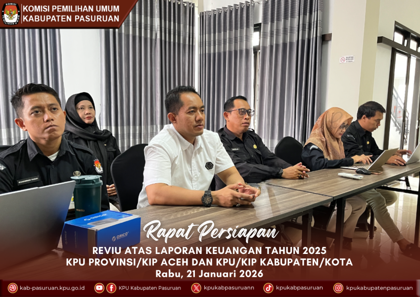 Melalui rapat persiapan ini, diharapkan seluruh satuan kerja, termasuk KPU Kabupaten Pasuruan, dapat mempersiapkan seluruh kebutuhan reviu laporan keuangan secara optimal. Dengan demikian, proses reviu yang akan dilaksanakan dapat berjalan lancar dan menghasilkan laporan keuangan yang berkualitas, tertib administrasi, serta sesuai dengan ketentuan yang berlaku. *(nf)