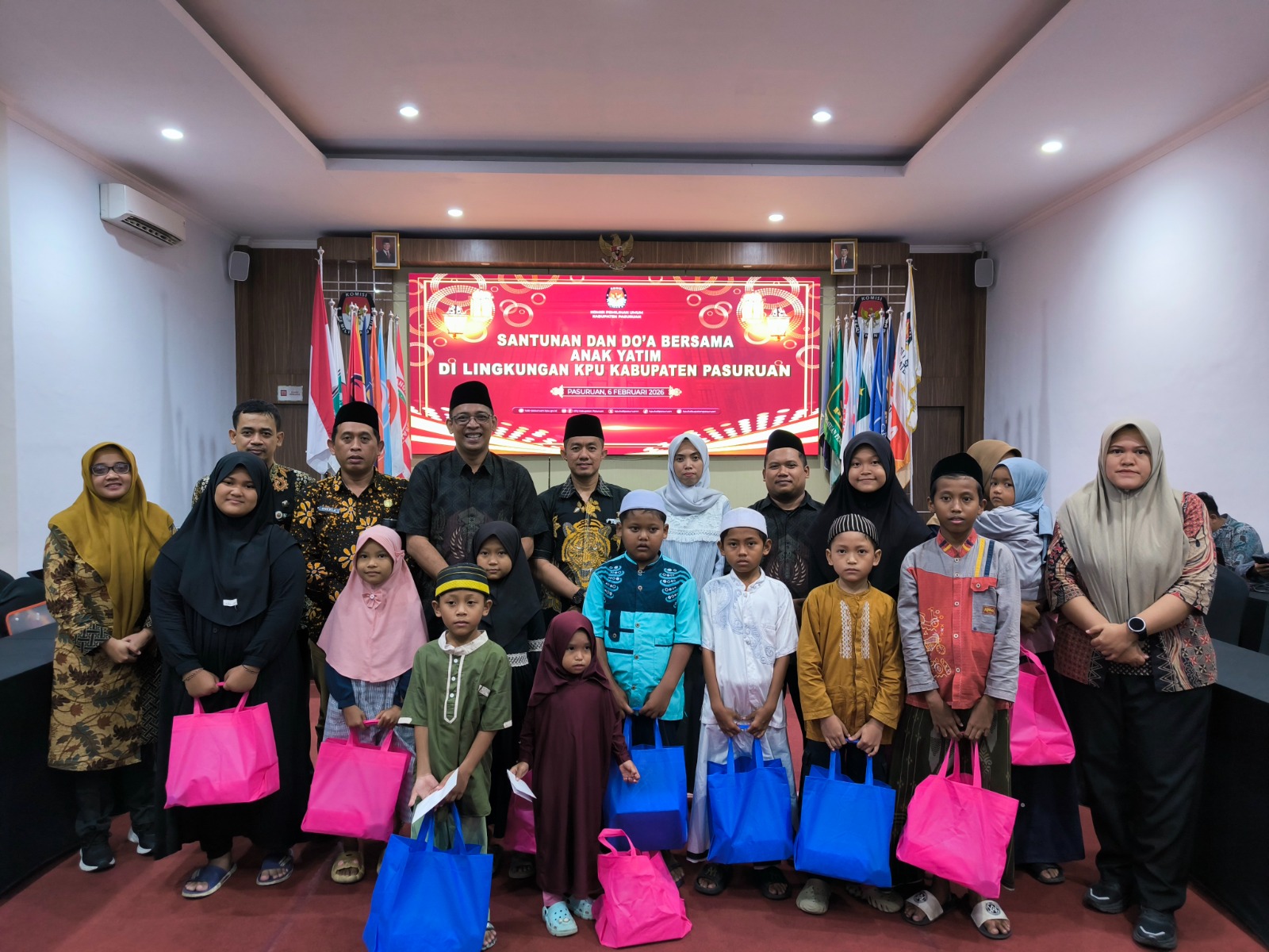Pasuruan, kab-pasuruan.kpu.go.id - Dalam rangka menyambut Bulan Suci Ramadan, Komisi Pemilihan Umum (KPU) Kabupaten Pasuruan menyelenggarakan doa bersama dan santunan anak yatim binaan Yayasan Jalaludin Pogar, di Gedung Aula Lantai 2 Kantor KPU Kabupaten Pasuruan. Jumat (6/2/2026).