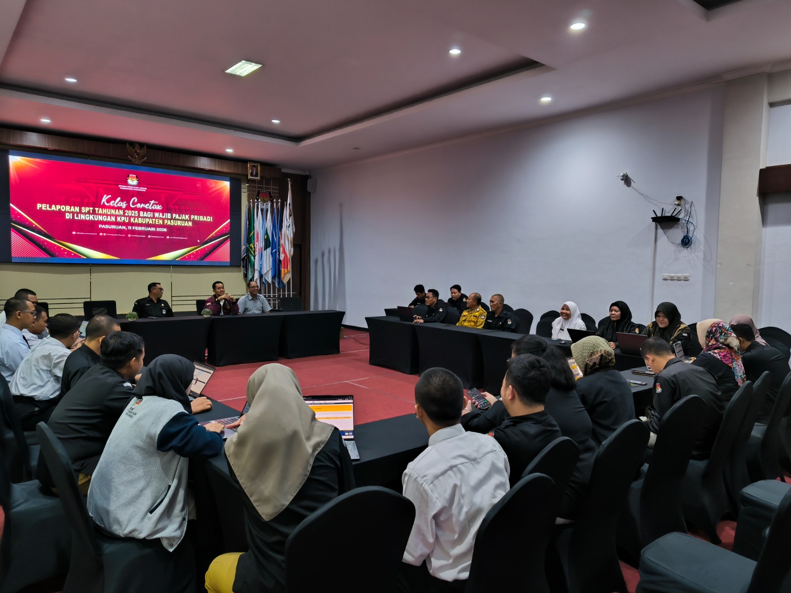 Pasuruan, kab-pasuruan.kpu.go.id – Komisi Pemilihan Umum (KPU) Kabupaten Pasuruan menggelar Kelas Coretax untuk pelaporan SPT Tahunan 2025 bagi wajib pajak pribadi di lingkungan KPU. Kegiatan ini berlangsung pada Rabu 11 Februari 2026, bertempat di Aula Lantai 2 Kantor KPU Kabupaten Pasuruan.