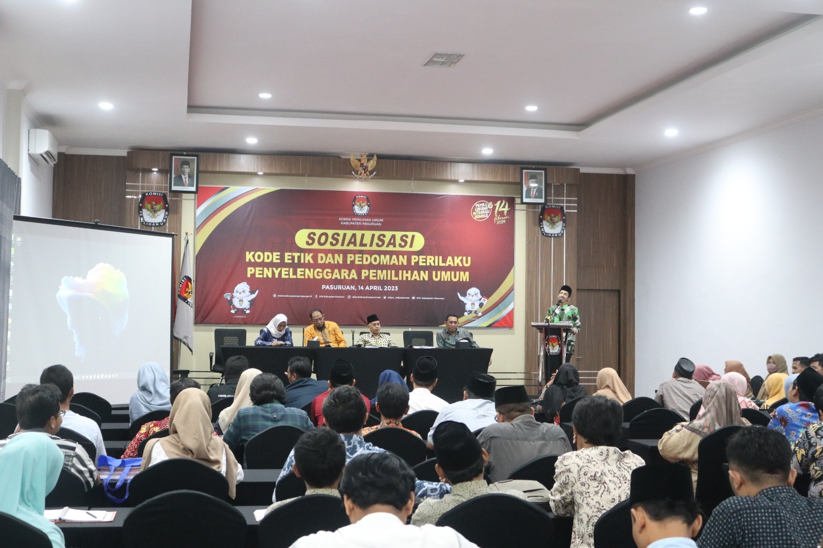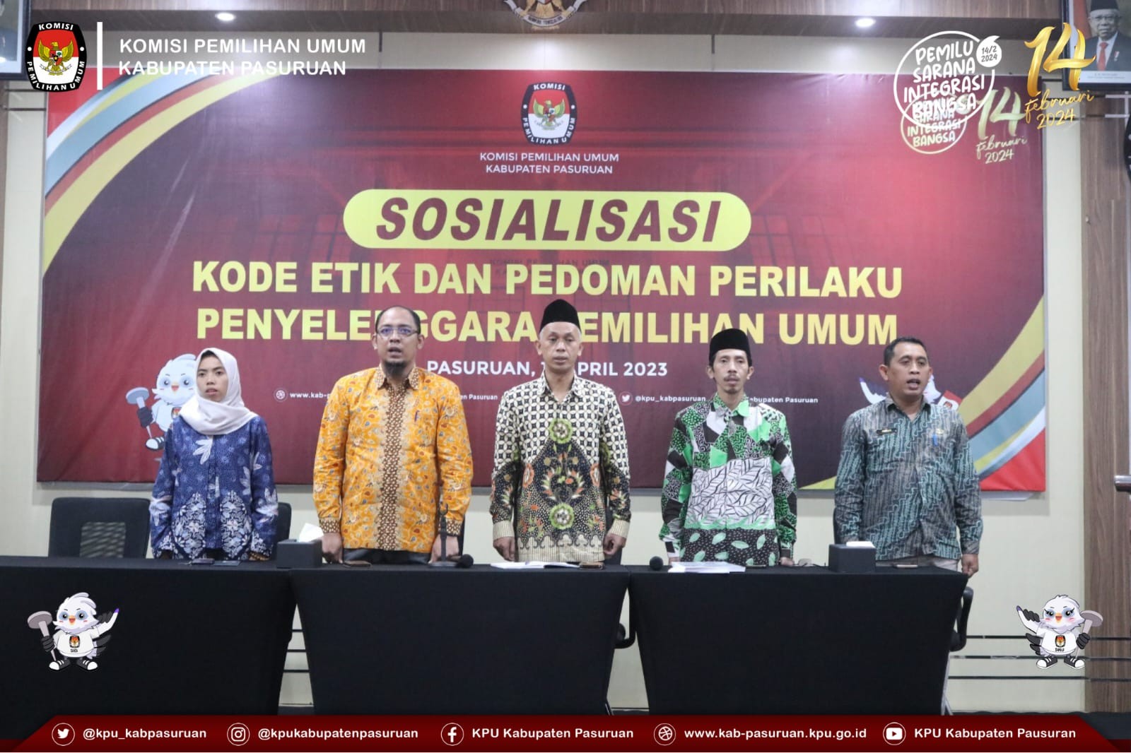 Pernyataan ini disampaikan Zainul Faizin Ketua KPU Kabupaten Pasuruan saat membuka acara sosialisasi kode etik dan pedoman perilaku penyelenggara pemilihan umum, Jumat 14 Februari 2023 di Aula Rapat Lt.2 Gedung KPU Kabupaten Pasuruan.