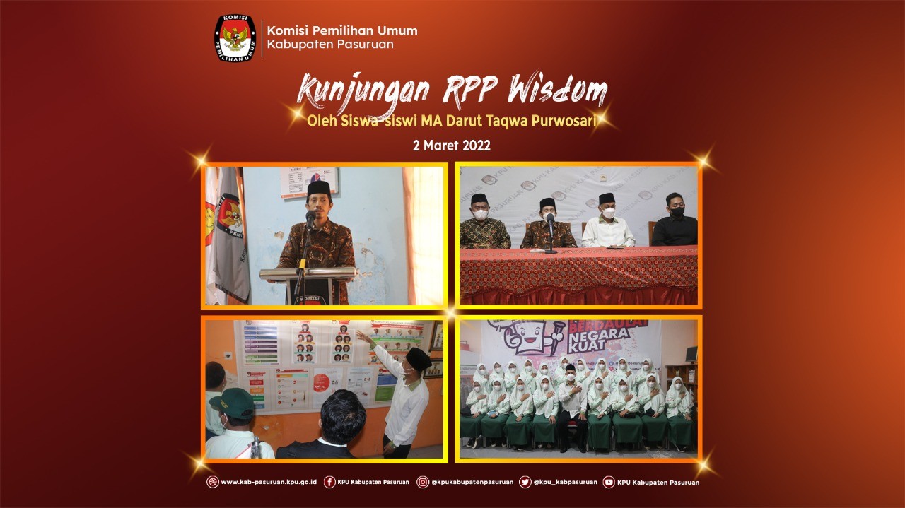 Pendidikan pemilih ini dilakukan dalam rangka memberikan pemahaman kepada Majelis Perwakilan Kelas (MPK) MA Darut Taqwa tentang Kepemiluan, mendorong demokrasi yang baik dan benar, serta sebagai upaya KPU Kabupaten Pasuruan dalam meningkatkan peran serta masyarakat dalam menyongsong Pemilu dan Pemilihan Serentak Tahun 2024, dengan memprioritaskan pemilih pemula.