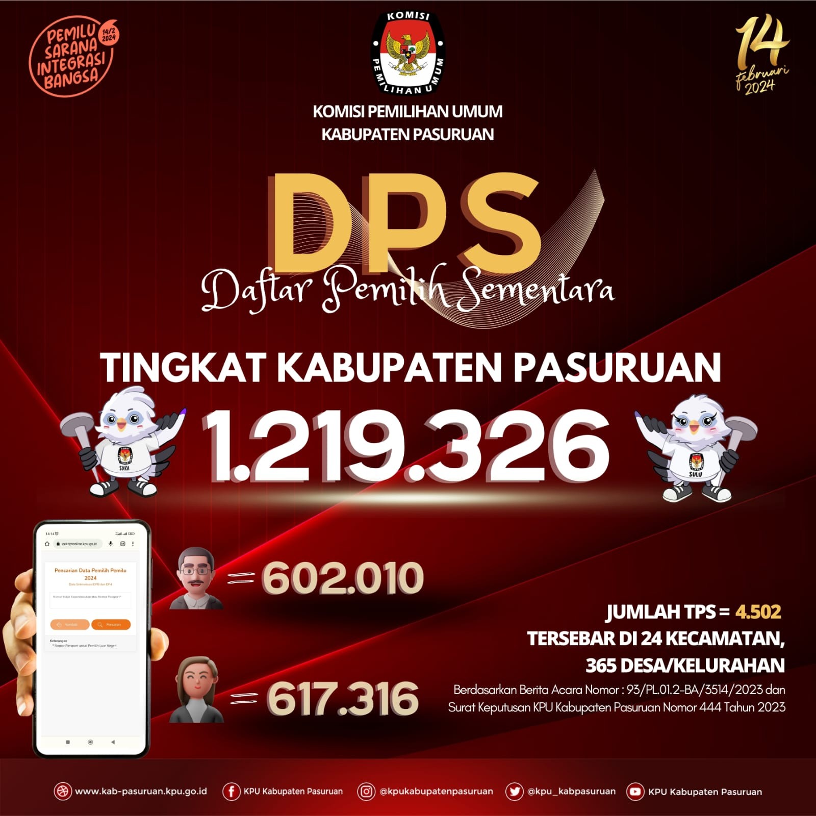 Hai #temanpemilih berikut adalah Jumlah Daftar Pemilih Sementara Tingkat Kabupaten Pasuruan