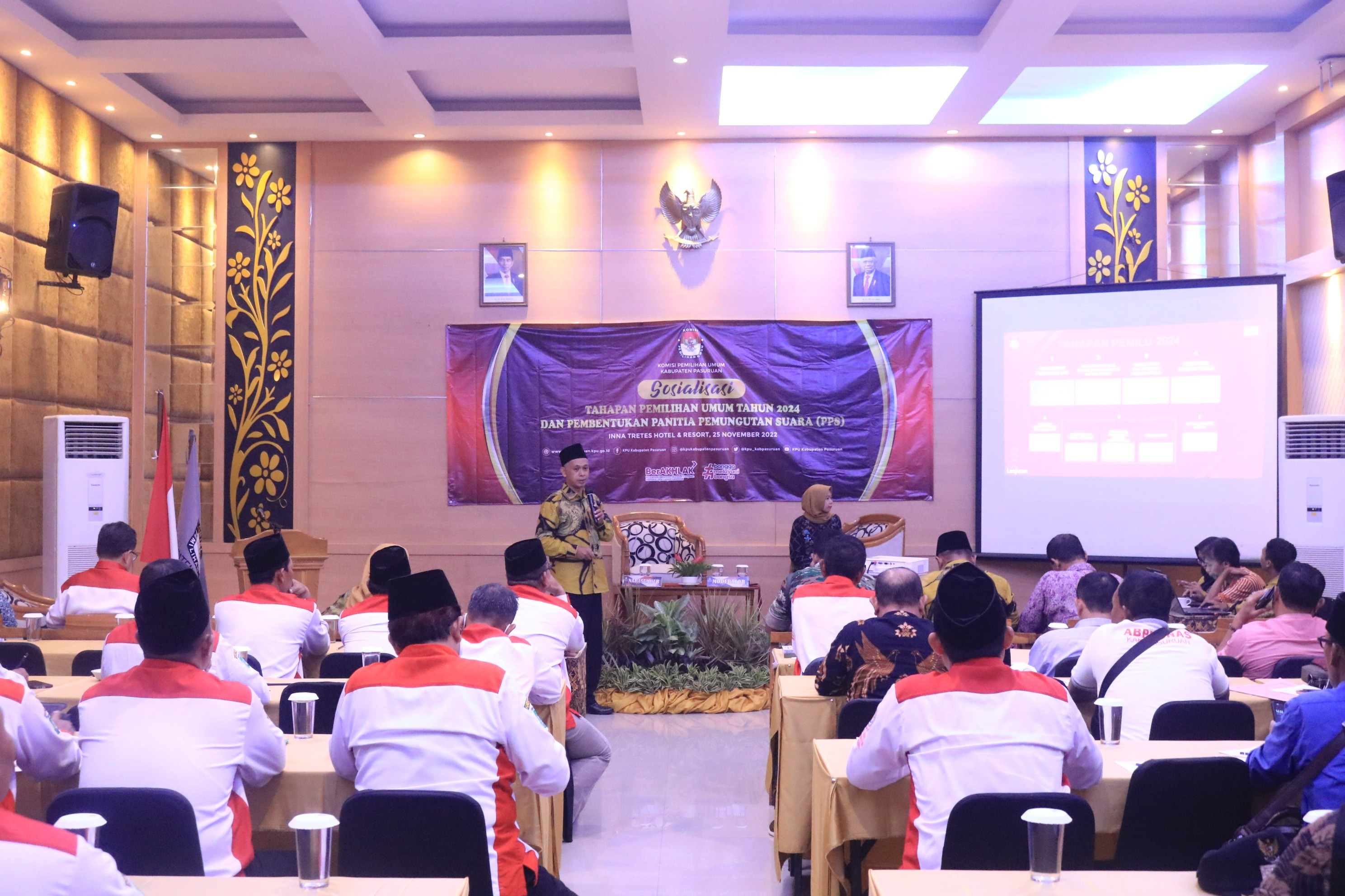 Prigen, https://kab-pasuruan.kpu.go.id/ . Komisi Pemilihan Umum Kabupaten Pasuruan, Jumat(25-11-2022) menyelenggarakan sosialisasi tahapan pemilu 2024 dan pembentukan Panitia Pemungutan Suara (PPS) di Inna Tretes Hotel dan Resort Prigen dengan peserta Asosiasi Kepala Desa (AKD) dan Asosasi Badan Permusyawaratan Desa Nasional (ABPEDNAS) Kabupaten Pasuruan.