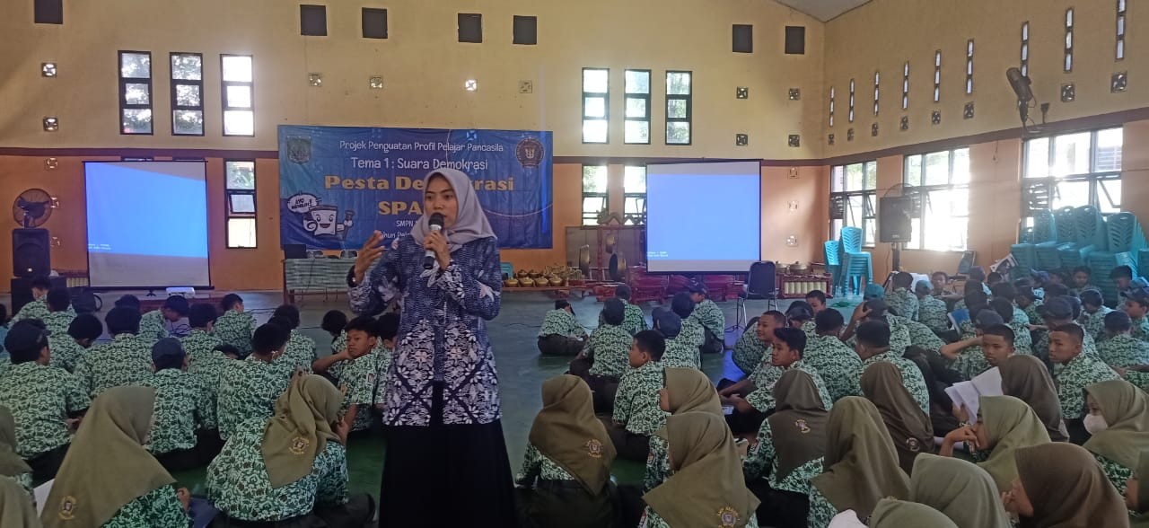 Komisi Pemilihan Umum (KPU) Kabupaten Pasuruan hadir sebagai Narasumber pada kegiatan Proyek Penguatan Profil Pelajar Pancasila di Unit Pelaksana Teknis (UPT) Satuan Pendidikan SMPN 1 Pandaan dengan tema "Suara Demokrasi”. Rabu, (30/08/2023) yang bertempat di SMPN 1 Pandaan Jl. Raya Kebonwaris 17 Pandaan.