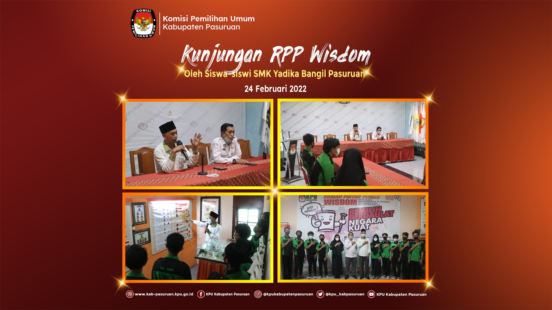 Sebanyak 10 peserta ikut dalam kunjungan RPP Wisdom. Sebelum tour RPP, siswa-siswi SMK Yadika terlebih dahulu diberikan bekal materi terkait Pemilu/Pemilihan yang dilaksanakan di ruang serba guna KPU Kabupaten Pasuruan.