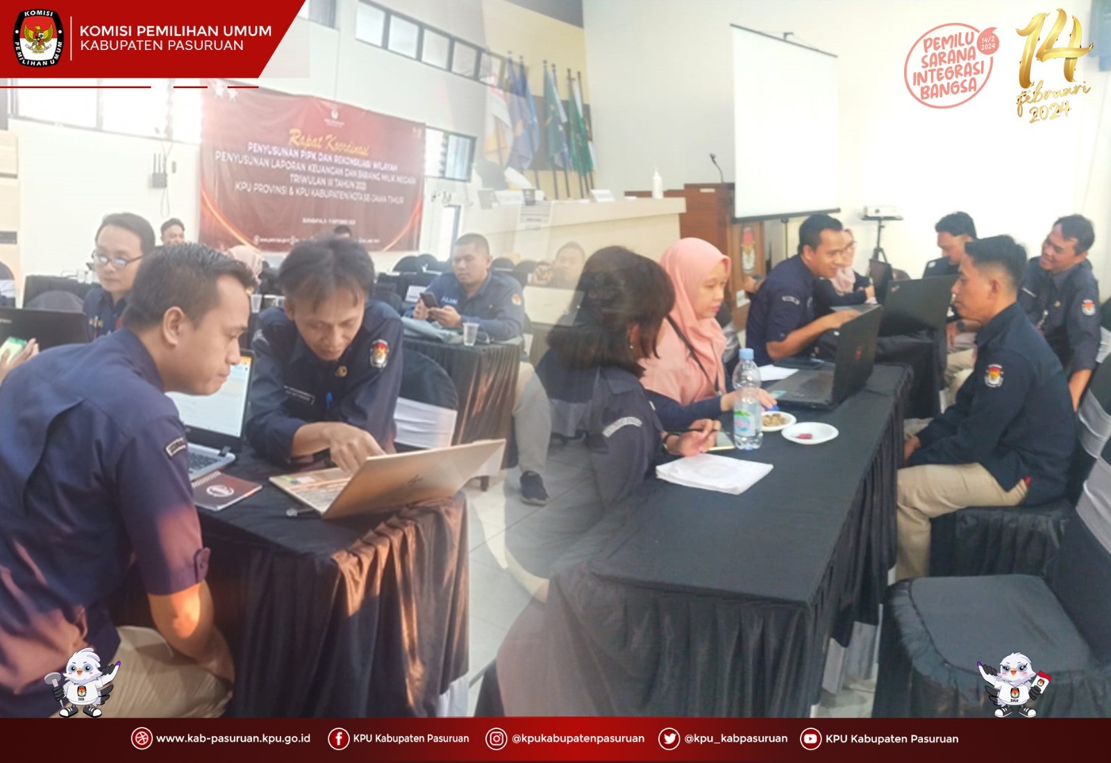 Pasuruan, kab-pasuruan.kpu.go.id - Senin-Rabu (09-11 Oktober 2023) Komisi Pemilihan Umum (KPU) Kabupaten Pasuruan Mengikuti Rapat Koordinasi (Rakor) Penyusunan Pengendalian Intern atas Pelaporan Keuangan (PIPK) dan Rekonsiliasi Wilayah Penyusunan Laporan Keuangan dan Barang Milik Negara (BMN) Triwulan III Tahun 2023 yang diadakan di KPU Kota Surabaya Jl. Adityawarman No. 87 Surabaya. Peserta Rapat adalah Kepala Sub Bagian (Kasubbag) Perencanaan, Data dan Informasi, Kasubbag Keuangan, Umum dan Logistik, Operator General Ledger Pelaporan ( GLP) dan Operator Aset/Persediaan dari 38 Kabupaten/Kota di Provinsi Jawa Timur.