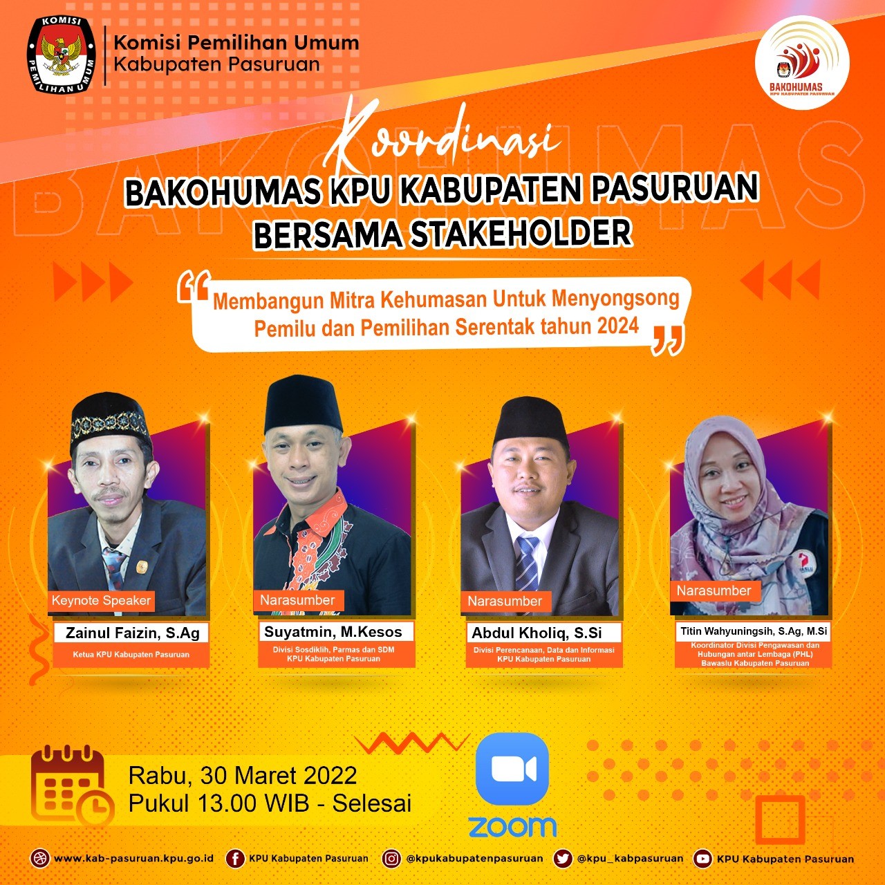 Ikuti Koordinasi Bakohumas KPU Kabupaten Pasuruan Bersama Stakeholder Tahun 2022 pada tanggal 30 Maret 2022