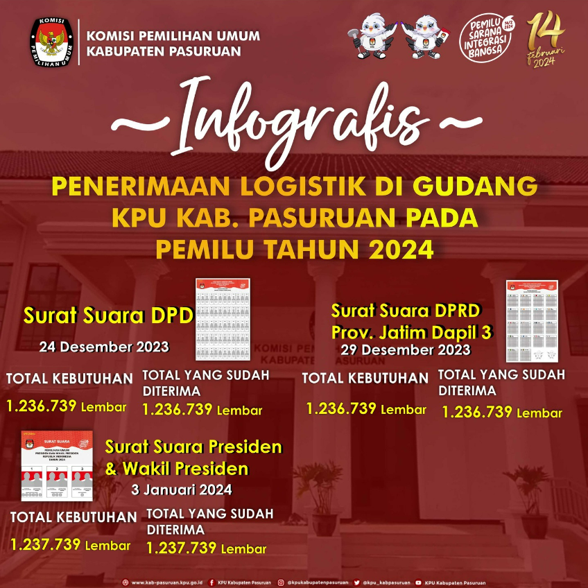 Infografis Penerimaan Logistik di Gudang KPU Kabupaten Pasuruan Pada Pemilu Tahun 2024