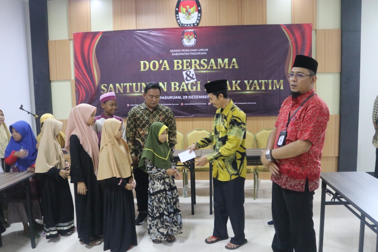 Pasuruan, Kamis (29/12/2022) KPU Kabupaten Pasuruan Mengadakan doa bersama dan memberikan santunan berupa uang tunai Rp. 150.000 kepada masing-masing anak yatim piatu yang berada di sekitar lingkungan kantor KPU Kabupaten Pasuruan. Kegiatan santunan tersebut diberikan kepada 10 orang anak yatim piatu di kantor KPU Kabupaten Pasuruan, Jl. Sudarsono, No. 1, Pogar Bangil.
