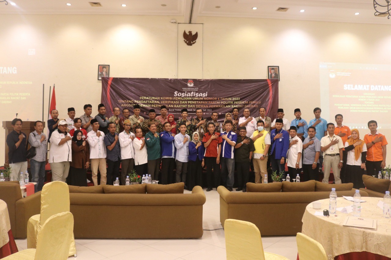 Pasuruan- https://kab-pasuruan.kpu.go.id/. Dua hari menjelang dibukanya pendaftaran Partai Politik Peserta Pemilu 2024, KPU Kabupaten Pasuruan menyelenggarakan sosialisasi Peraturan KPU Nomor 4 Tahun 2022 tentang Pendaftaran, Verifikasi dan Penetapan Partai Politik Peserta Pemilihan Umum Anggota Dewan Perwakilan Rakyat dan Dewan Perwakilan Rakyat Daerah pada Jum’at (29-07-2022) pukul 13.00 WIB. di Hotel Royal Tretes View,Kecamatan Prigen, Kabupaten Pasuruan. Kegiatan sosialisasi tersebut dihadiri oleh Ketua dan anggota KPU Kabupaten Pasuruan, Insan Qoriawan, Divisi Teknis Penyelengggaraan KPU Provinsi Jawa Timur, seluruh Komisioner Bawaslu, Asisten Bidang Pemerintahan dan Kesejahteraan Rakyat, Rachmat Syarifuddin , Kepala Bakesbangpol, Wakapolres Pasuruan dan Polres Pasuruan Kota, Kejaksaan Negeri serta Kodim 0819, serta perwakilan dari 23 Partai Politik calon peserta Pemilu di wilayah Kabupaten Pasuruan yang pada saat ini sudah memiliki akun di Sistem Informasi Partai Politik (Sipol).