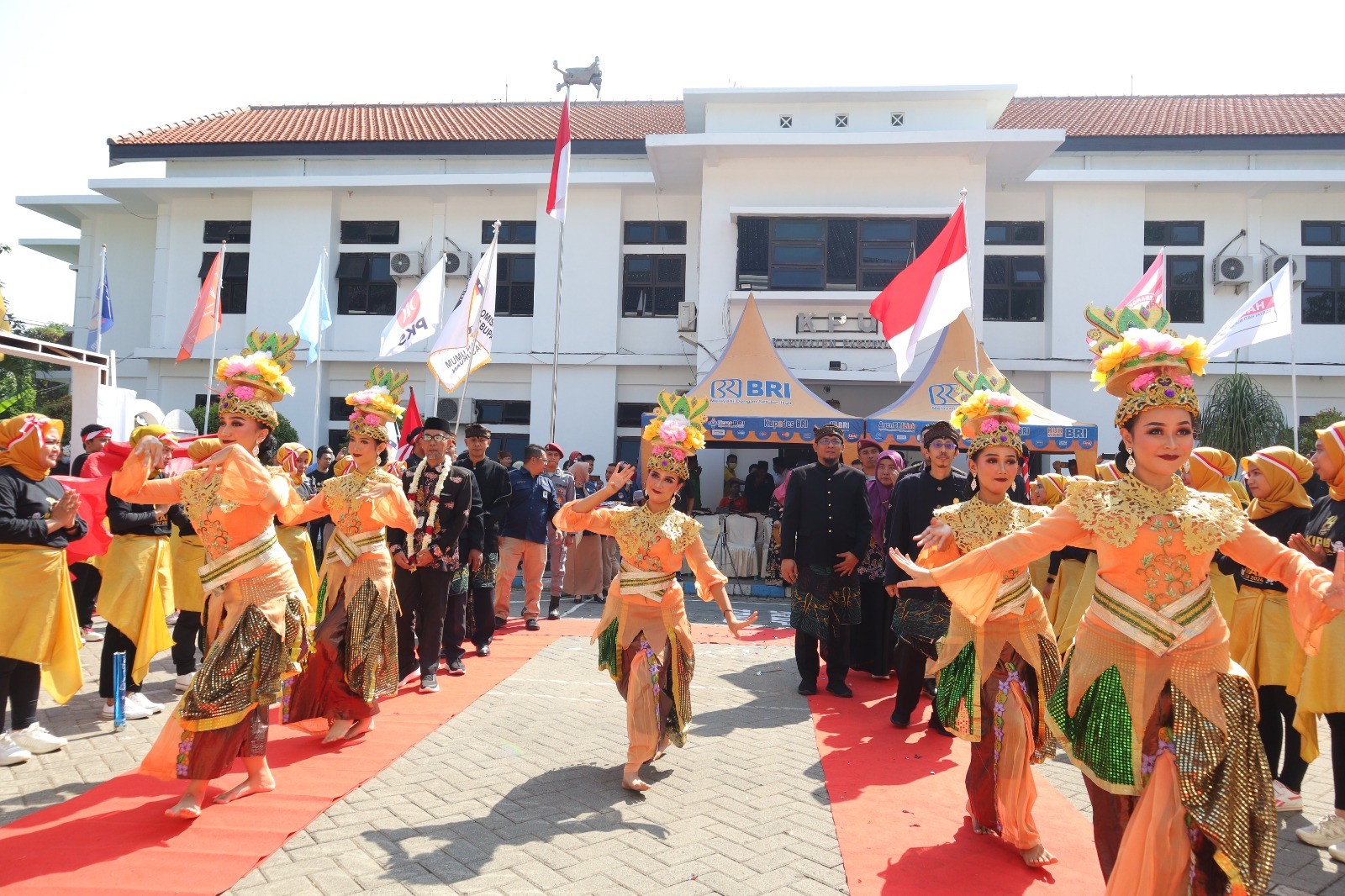 Lalu, acara dilanjutkan dengan pengalungan bunga oleh Ketua KPU Kabupaten Pasuruan kepada Plh ketua KPU Probolinggo Akhmad Faruk. Setelah pengalungan bunga, ketua dan anggota KPU Kabupaten Pasuruan, beserta rombongan, tamu undangan dan jajaran forkopimda memasuki Gedung KPU dengan diiringi tarian cucuk lampah.