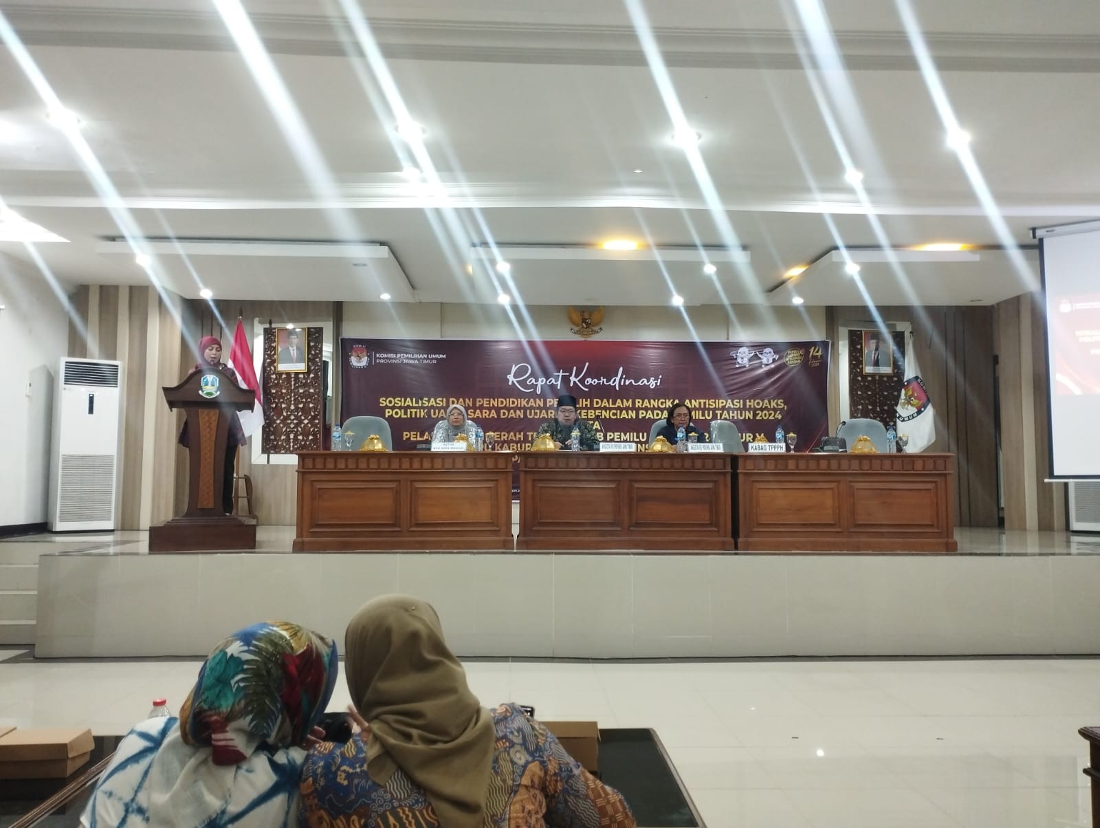 Pasuruan, kab-pasuruan.kpu.go.id - Komisi Pemilihan Umum (KPU) Kabupaten Pasuruan hadir dalam Rapat Koordinasi Sosialisasi dan Pendidikan Pemilih dalam rangka antisipasi Hoax, Politik Uang, Sara, dan Ujaran Kebencian pada Pemilu Tahun 2024, Jum’at, (6/10/2023) di Kantor Bakorwil I Pemerintah dan Pembangunan Provinsi Jawa Timur di Madiun, jalan Pahlawan Nomor 31 Madiun.