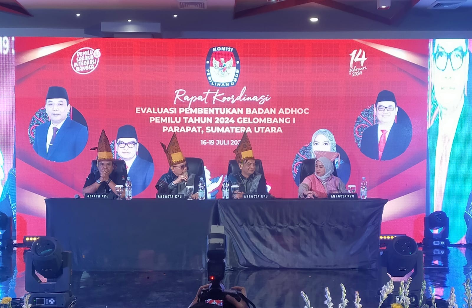 Pasuruan- Komisi Pemilihan Umum Republik Indonesia mengelar rapat koordinasi pembentukan badan adhoc pemilu tahun 2024 gelombang 1 di Hotel Niagara Parapat, kabupaten Simalungun, Sumatera Utara, (16-19/07/2023). Kegiatan Rakor tersebut dihadiri oleh anggota KPU RI, Parsadaan Harahap, Yulianto Sudrajat, Betty Epsilon Idroos, Sekjen KPU RI Bernad Hermawan Sutrisno beserta jajarannya.