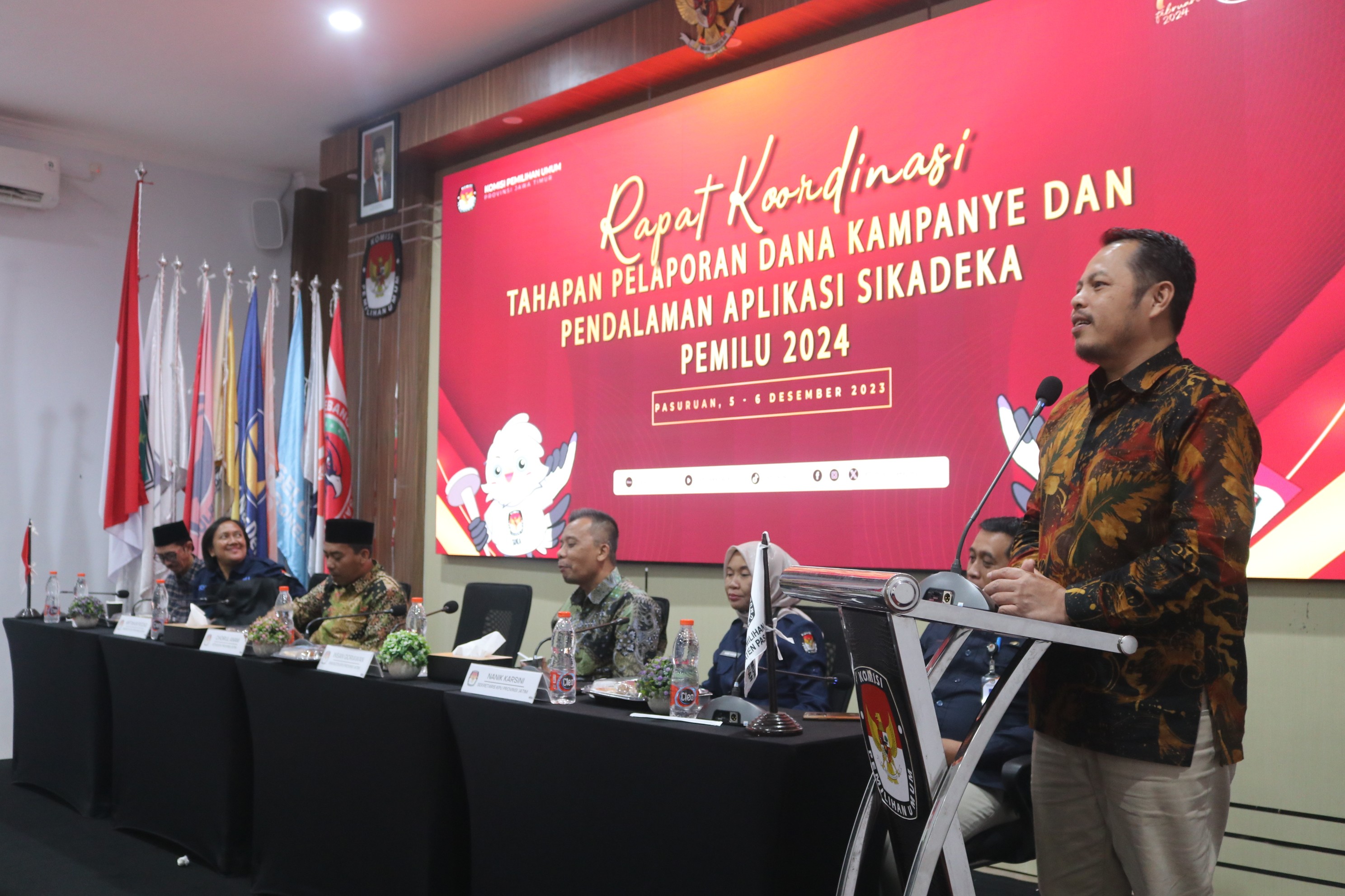 Pasuruan, kab-pasuruan.kpu.go.id – Komisi Pemilihan Umum (KPU) Kabupaten Pasuruan menjadi tuan rumah dalam Rapat Koordinasi Tahapan Pelaporan Dana Kampanye dan Pendalaman Aplikasi Sistem Informasi Kampanye, dan Dana Kampanye (SIKADEKA) Pemilu 2024. Selasa-Rabu, (5-6/12/2023). Bertempat di Aula lantai 2 KPU Kabupaten Pasuruan.