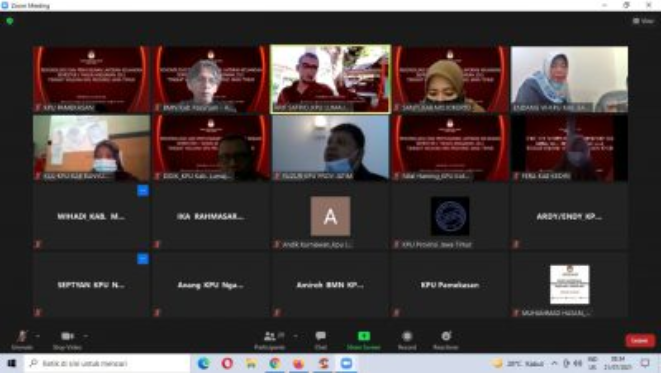Dalam kegiatan dimaksud, diikuti oleh Operator SAIBA dan Operator SIMAK BMN pada KPU Kabupaten/Kota di wilayah Jawa Timur yang melaporkan kelengkapan Data pendukung sebagai bagian dari kegiatan rekonsiliasi dan penyusunan LK Semester I Tahun 2021 Tingkat Wilayah.