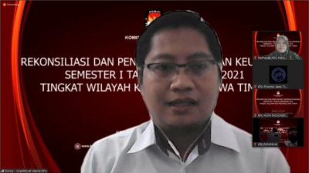 Pasuruan, kab-pasuruan.kpu.go.id – Kamis (22/07/2021) Komisi Pemilihan Umum (KPU) Provinsi Jawa Timur mengadakan Reviu atas Laporan Keuangan (LK) Tingkat Unit Akuntansi Kuasa Pengguna Anggaran (UAKPA) dan Unit Akuntansi Kuasa Pengguna Anggaran Wilayah (UAKPA-W) Semester I Tahun 2021 pada KPU Provinsi dan KPU Kabupaten/Kota di wilayah Jawa Timur. Kegiatan tersebut, sebagai lanjutan atas pelaksanaan Rekonsiliasi dan Penyusunan Laporan Keuangan Semester I Tahun 2021 Tingkat Wilayah yang dilaksanakan selama 2 (dua) hari, mulai 21 – 22 Juli 2021.