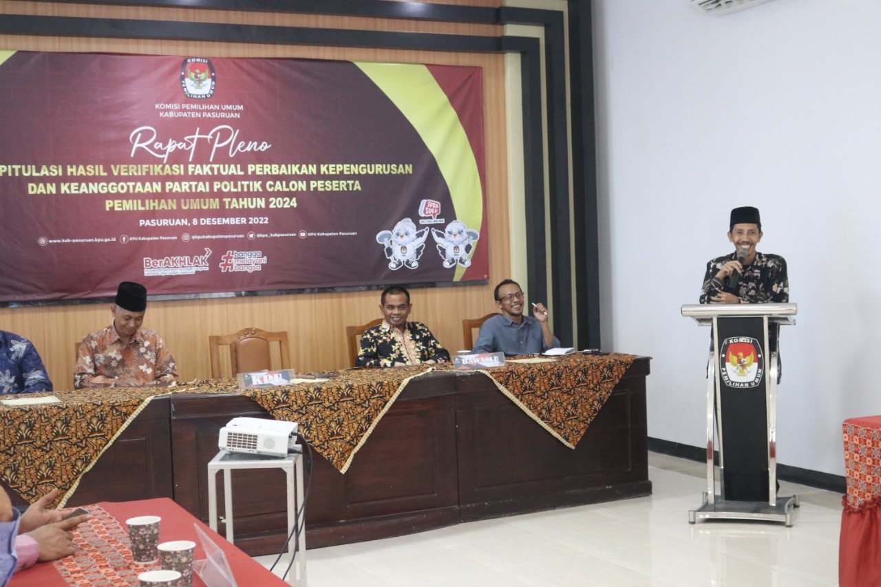 KPU Kabupaten Pasuruan Gelar Rapat Pleno Rekapitulasi Hasil Verifikasi Faktual Perbaikan Kepengurusan dan Keanggotaan Partai Politik Calon Peserta Pemilihan Umum Tahun 2024
