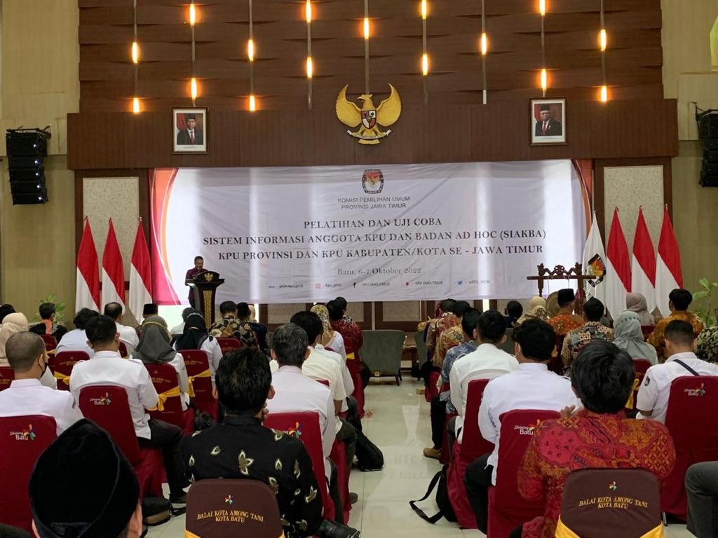 Pasuruan, kab-pasuruan.kpu.go.id – Komisi Pemilihan Umum Kabupaten Pasuruan pada Kamis (06/10/2022) mengikuti kegiatan uji coba Sistem Informasi Anggota KPU dan Badan Adhoc. Kegiatan uji coba tersebut diselenggarakan oleh KPU Provinsi Jawa Timur pada pukul 14.00 WIB yang diikuti oleh Divisi Sosdiklih Parmas dan SDM, Kasubbag Hukum dan SDM , serta calon operator SIAKBA KPU Kabupaten/Kota Se - Jawa Timur, di Graha Pancasila Balai Kota Among Tani Kota Batu, kegiatan tersebut turut dihadiri pula oleh Ir. Punjul Santoso S.H., M.H selaku Wakil Wali Kota Batu.