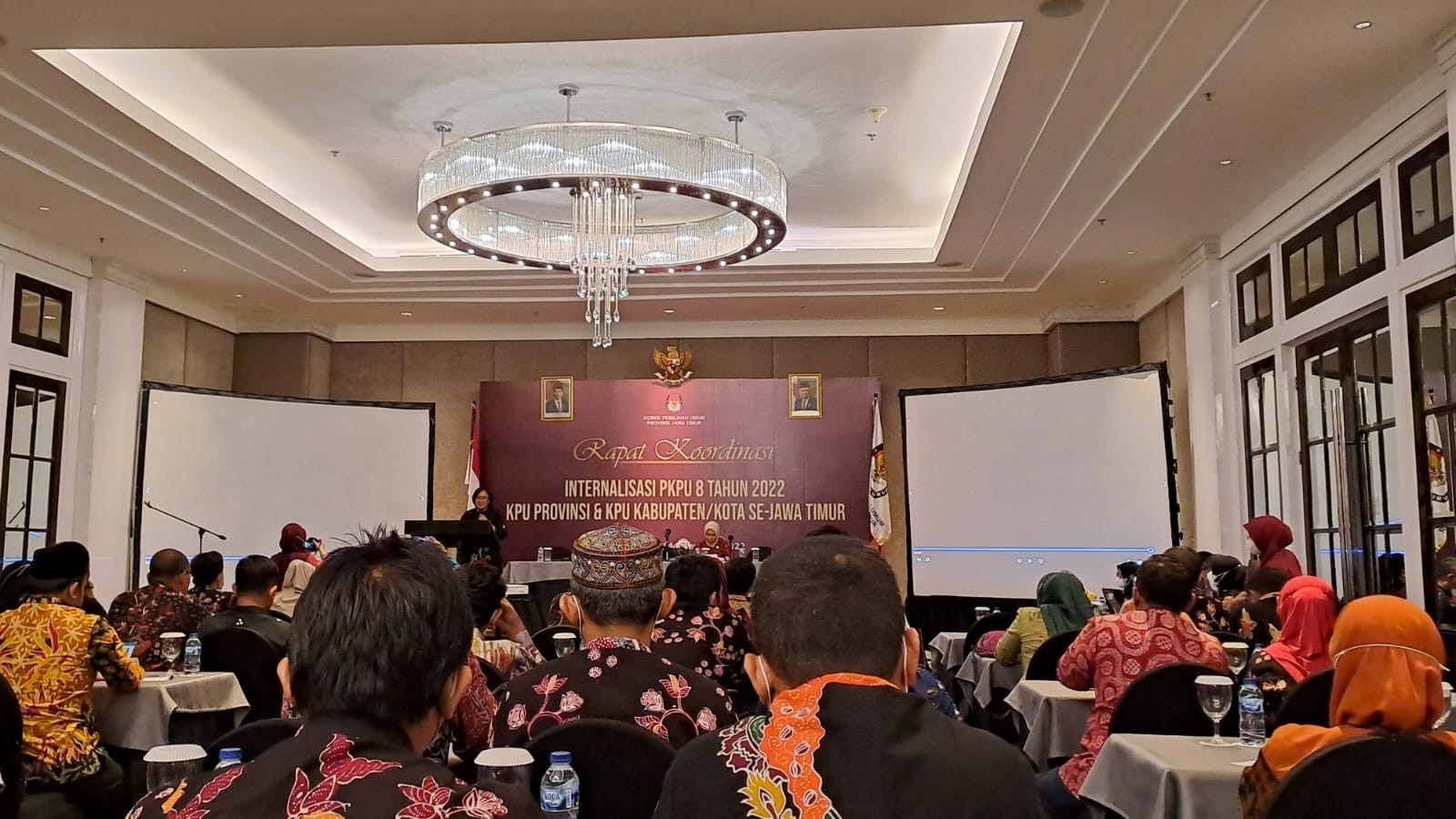 KPU KABUPATEN PASURUAN IKUTI RAKOR INTERNALISASI PKPU 8 TAHUN 2022 KPU PROVINSI DAN KPU KABUPATEN/KOTA SE-JAWA TIMUR