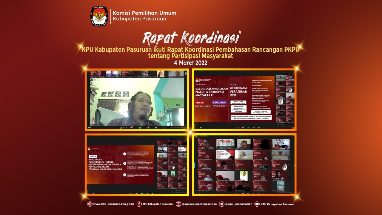 KPU Kabupaten Pasuruan Ikuti Rapat Koordinasi Pembahasan Rancangan PKPU tentang Partisipasi Masyarakat