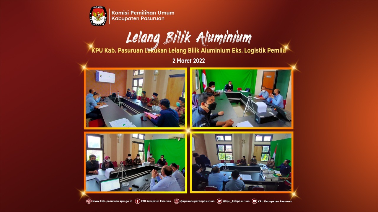 Pasuruan, kab-pasuruan.kpu.go.id - rabu (02-03-2022) Tepat pada pukul 10.00 WIB penawaran Lelang Bilik Alumumunium Eks. Pemilu KPU Kabupaten Pasuruan secara system resmi ditutup. Hal ini sesuai dengan pengumuman lelang dengan Nomor 079/RT01.3-Pu/3514/Sek-Kab/2022 Tanggal 23 Februari 2022 tentang pelaksanaan lelang bilik suara berbahan aluminium milik KPU Kabupaten Pasuruan dengan berat total sekitar 12.817,26 kg dan penetapan Nilai Limit sebesar Rp 230.710.680,- melalui perantara Kantor Pelayanan Kekayaan Negara dan Lelang (KPKNL) Sidoarjo.