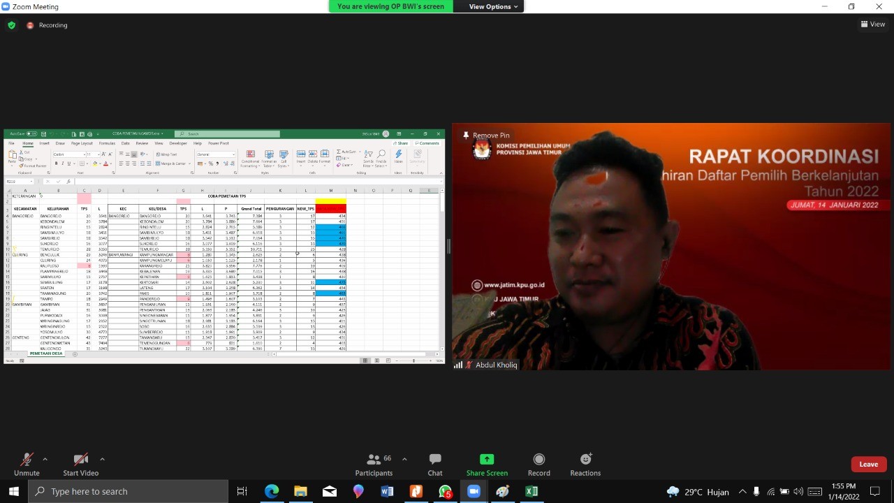 Pasuruan, kab-pasuruan.kpu.go.id - Jum'at (14-01-2022) KPU Kabupaten Pasuruan mengikuti rapat koordinasi yang diadakan oleh KPU Provinsi Jawa Timur terkait Pemutakhiran Daftar Pemilih Berkelanjutan (PDPB) Tahun 2022, dilaksanakan mulai pukul 13.00 WIB dan diikuti oleh Seluruh Divisi Perencanaan, Data dan Informasi dan Operator Sidalih Berkelanjutan KPU se-Jawa Timur sesuai undangan KPU Provinsi Jawa Timur Nomor 10/PL.02/35/2022 Tanggal 11 Januari 2022.