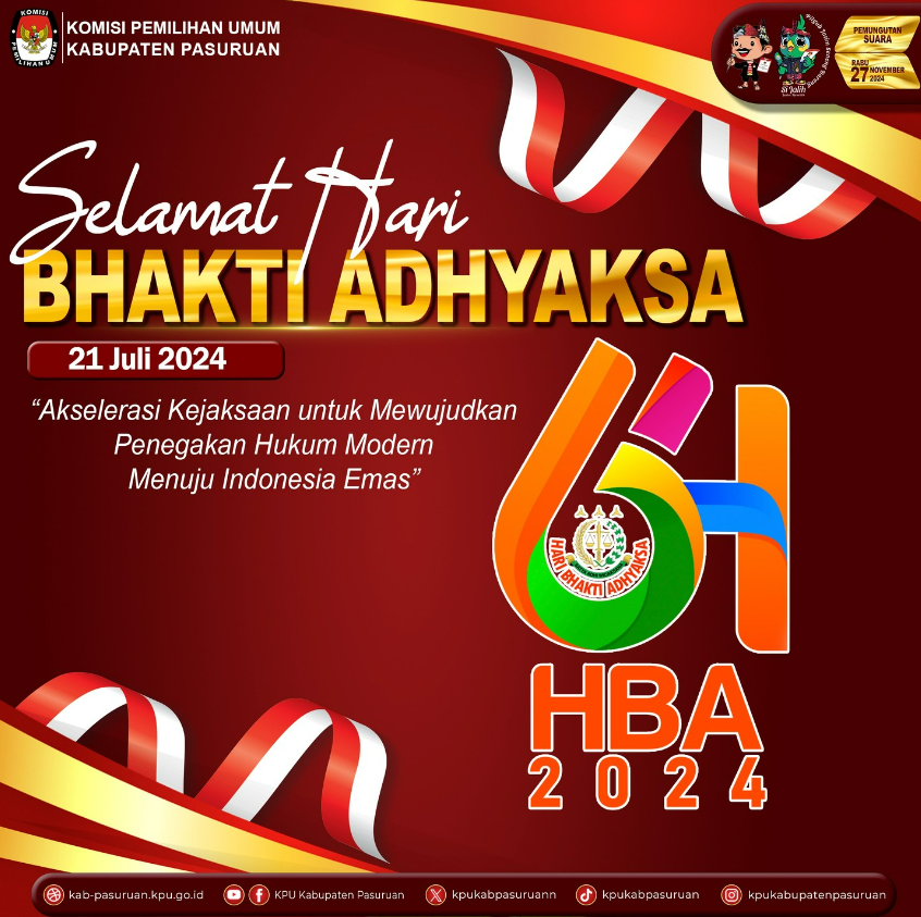 KPU) Kabupaten Pasuruan mengucapkan Selamat Hari Bhakti Adhyaksa ke-64