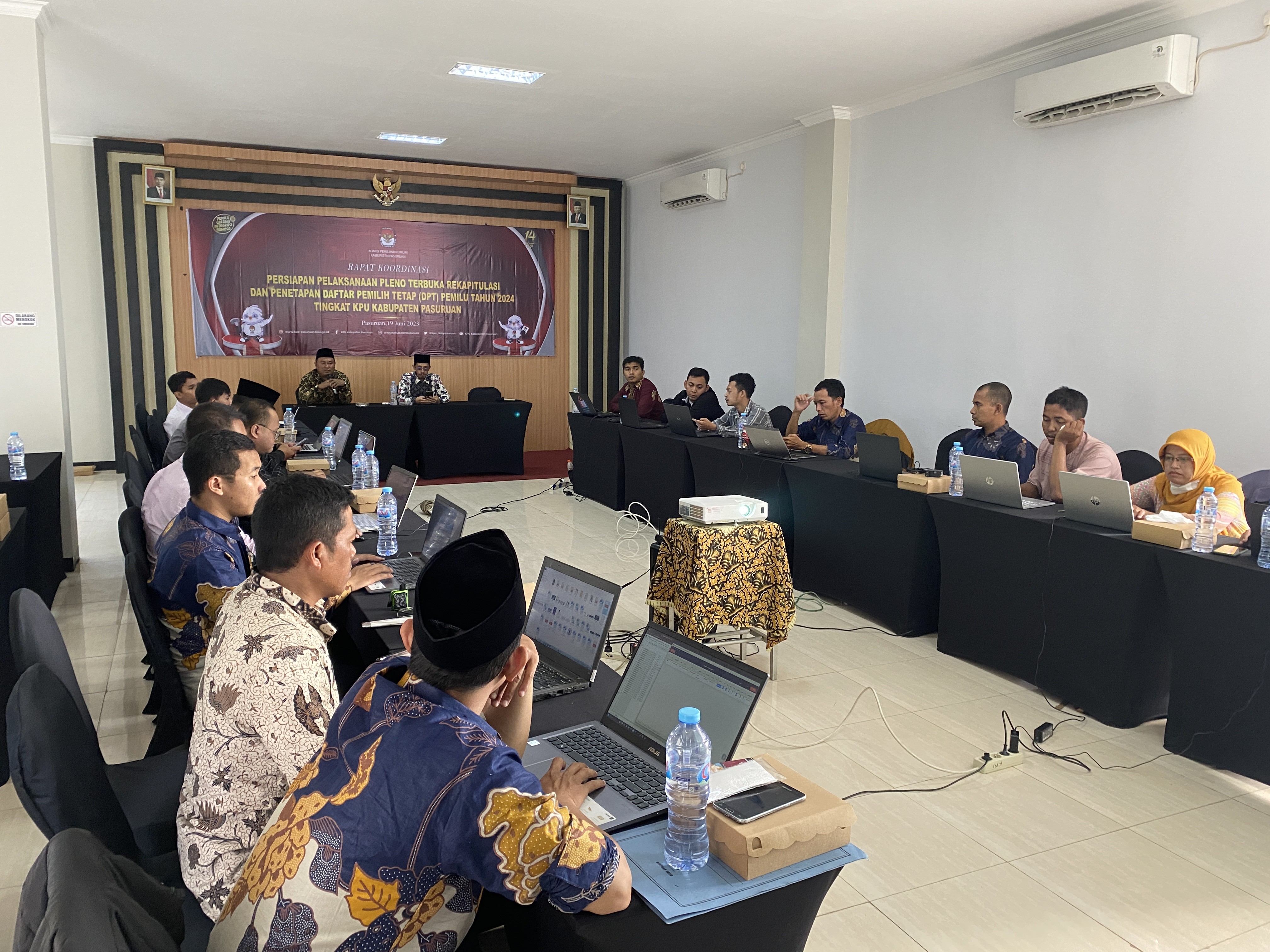 Rapat pleno tersebut dihadiri oleh Ketua KPU Kabupaten Pasuruan Zainul Faizin, Anggota KPU Kabupaten Pasuruan Suyatmin, Abdul Kholiq, Fatimatuz Zahro, dan Eriek Zainuri. Selain itu juga dihadiri oleh perwakilan partai politik peserta pemilu, Perwakilan dari setiap Stakeholder, Bawaslu Kabupaten Pasuruan, Lembaga Swadaya Masyarakat yang membidangi Pemilu, Panwasacam dan PPK dari setiap kecamatan.