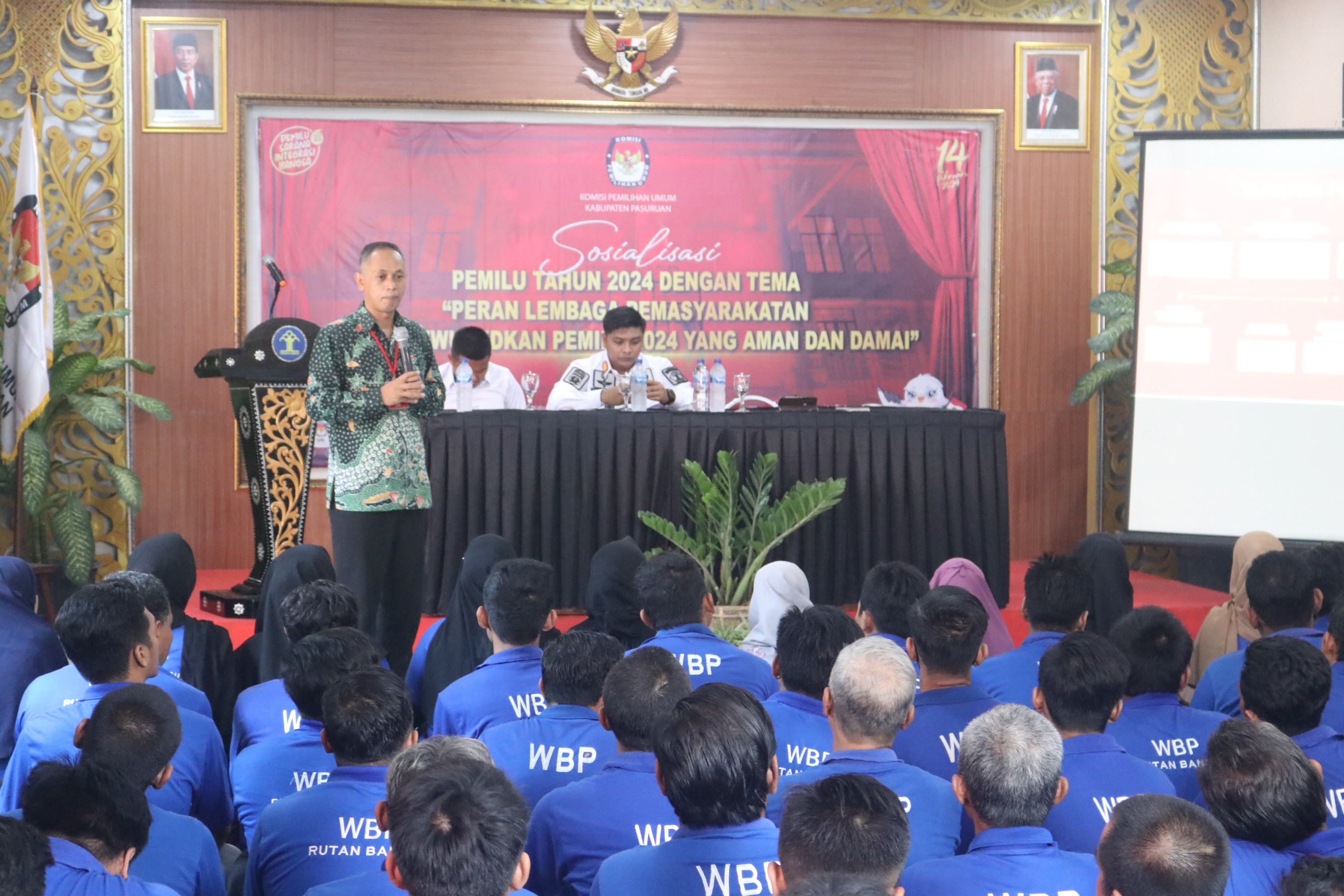 Pasuruan, kab-pasuruan.kpu.go.id - Komisi Pemilihan Umum (KPU) Kabupaten Pasuruan gelar Sosialisasi Pemilu Tahun 2024 tema "Peran Lembaga Pemasyarakatan dalam mewujudkan Pemilu 2024 yang Aman dan Damai". Jum'at, (8/12/2023). Bertempat di Rutan Kelas IIB Bangil, Kabupaten Pasuruan.
