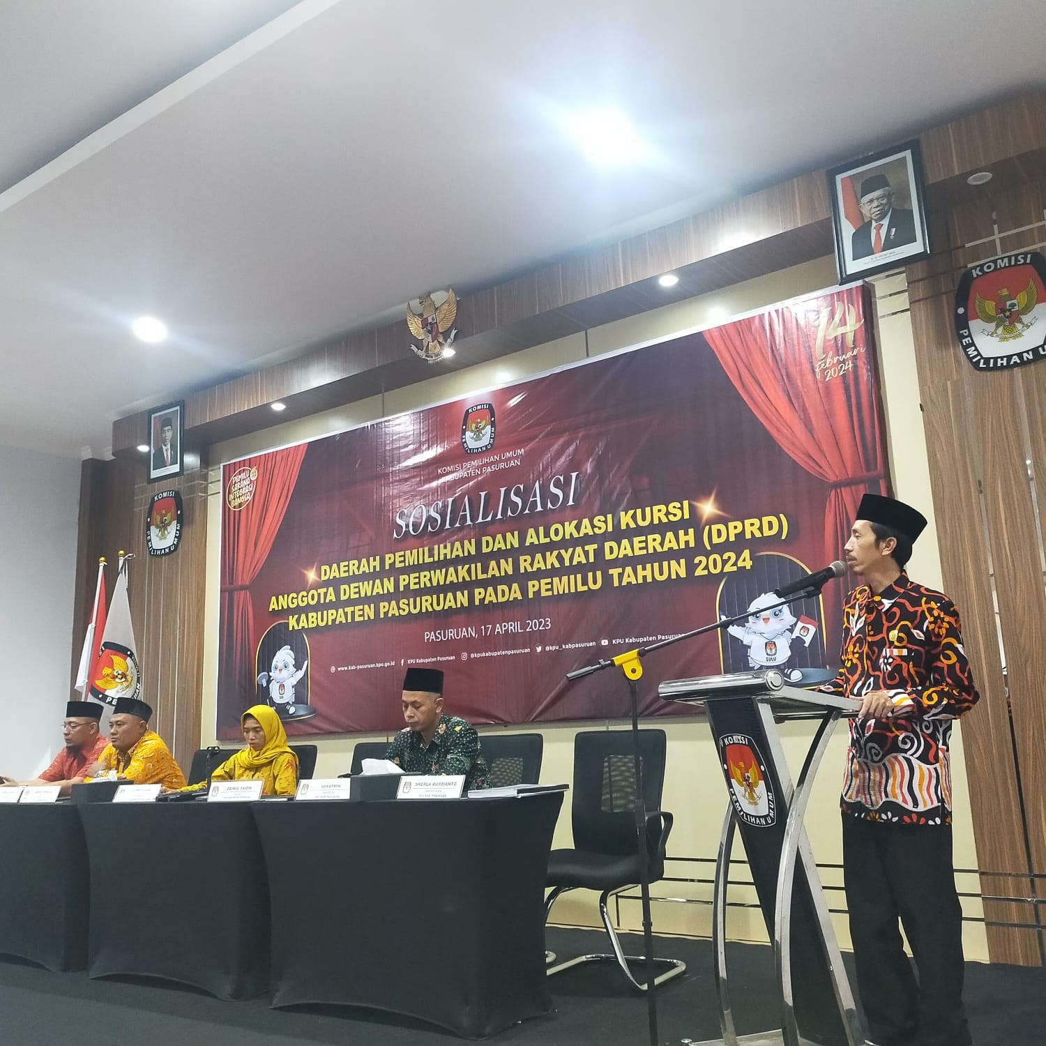 Bangil- https://kab-pasuruan.kpu.go.id- Menjelang proses tahapan pendaftaran bakal calon legislatif dalam pemilu 2024 yang selanjutnya yaitu pendaftaran bakal calon legislatif, Komisi Pemilihan Umum Kabupaten Pasuruan menggelar Sosialisasi Peraturan KPU 6 Tahun 2023 tentang Daerah Pemilihan ( Dapil ) dan Alokasi Kursi Anggota DPR, DPRD Provinsi, DPRD Kabupaten/Kota dalam Pemilu tahun 2024. Kegiatan Sosialisasi dengan peserta dari insan media di kabupaten Pasuruan yang berlangsung di Aula Gedung Serbaguna KPU Kabupaten Pasuruan pada Senin, 17 April 2023 mulai pukul 14.00 WIB hingga menjelang berbuka puasa.