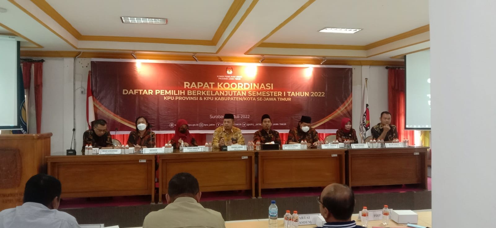 Pasuruan, kab-pasuruan.kpu.go.id-Sabtu (2/7/2022), KPU Provinsi Jawa Timur mengadakan Rapat Koordinasi Daftar Pemilih Berkelanjutan Semester I Tahun 2022 KPU Provinsi & KPU Kabupaten/Kota Se-Jawa Timur bertempat di kantor KPU Provinsi Jawa Timur, Jalan Raya Tenggilis No.1-3 Surabaya.