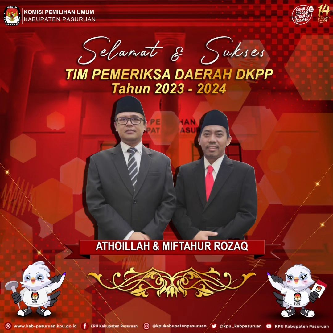 Seluruh Jajaran Komisi Pemilihan Umum Kabupaten Pasuruan mengucapkan Selamat dan Sukses atas Dilantiknya Anggota KPU Jatim Miftahur Rozaq dan Athoillah sebagai Tim Pemeriksa Daerah Provinsi Jawa Timur dari Unsur KPU Periode 2023-2024.
