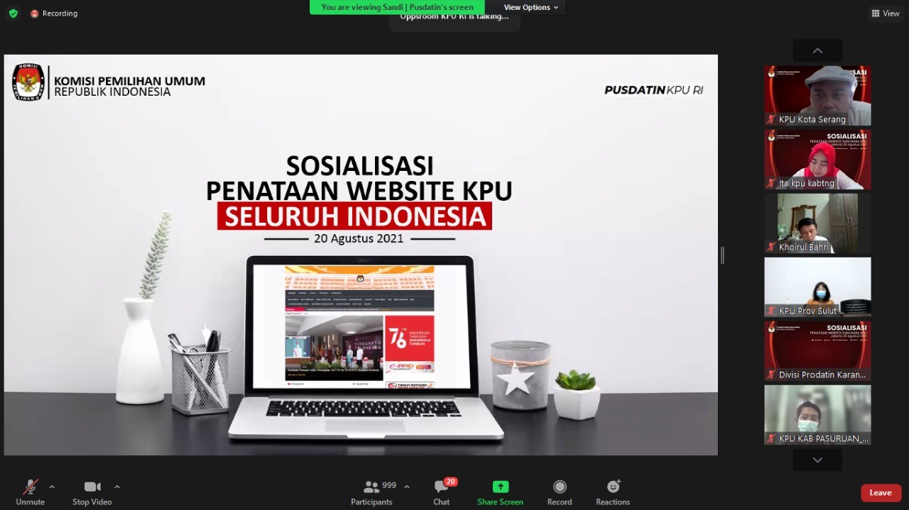 Pasuruan, kab-pasuruan.kpu.go.id – Jumat (20/08/2021) Komisi Pemilihan Umum (KPU) Republik Indonesia mengadakan rapat sosialisasi lanjutan penataan Web KPU/KIP Provinsi dan KPU/KIP Kabupaten/Kota secara daring melalui zoom meeting. Kegiatan yang diikuti oleh Ketua KPU/KIP Provinsi dan Ketua KPU/KIP Kabupaten/Kota se-Indonesia merupakan tindak lanjut sosialisasi migrasi web template KPU RI.