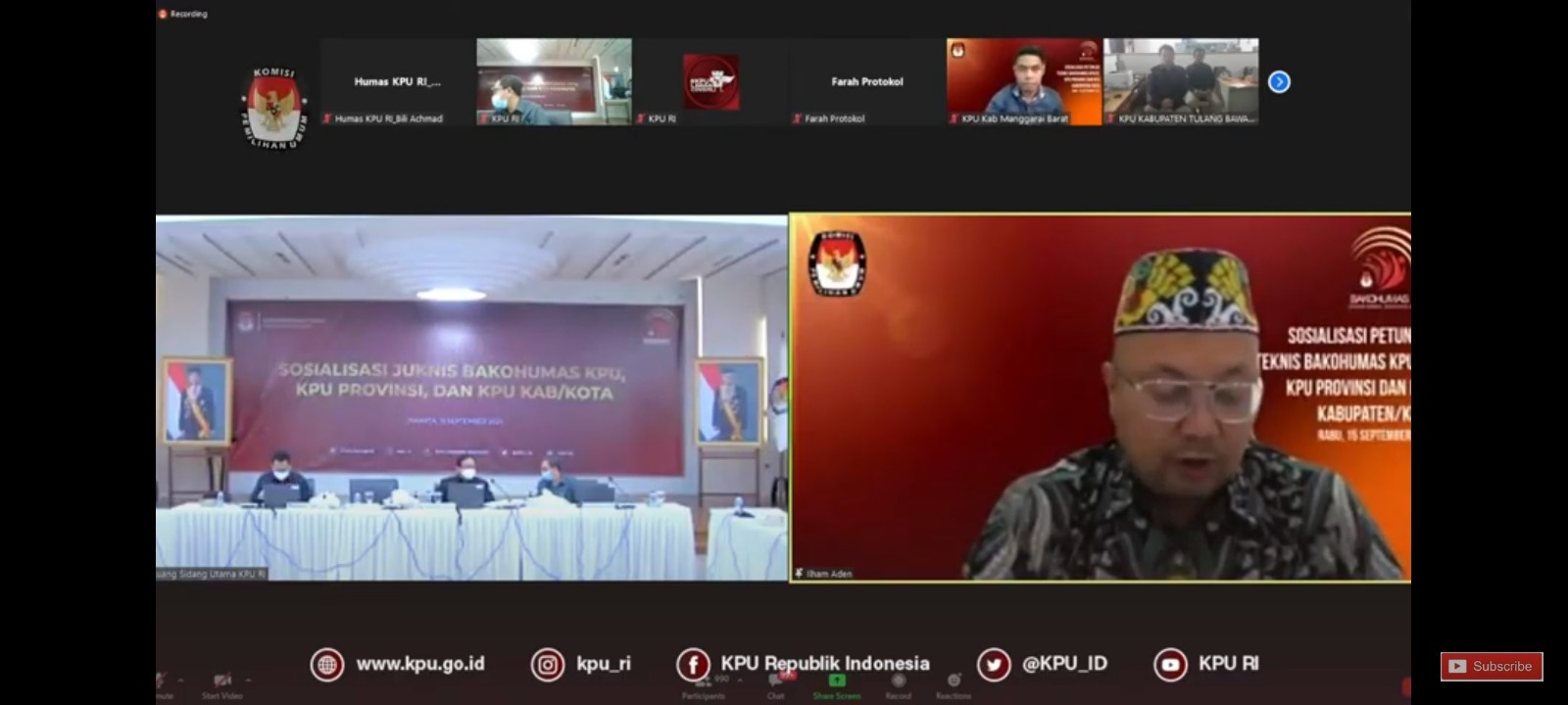 Pasuruan, kab-pasuruan.kpu.go.id - Rabu (15/09/2021) Komisi Pemilihan Umum (KPU) Republik Indonesia menggelar sosialisasi juknis Bakohmas KPU, KPU Provinsi dan KPU Kabupaten/Kota secara daring melalui aplikasi zoom meeting dan live streaming di kanal youtube KPU RI.