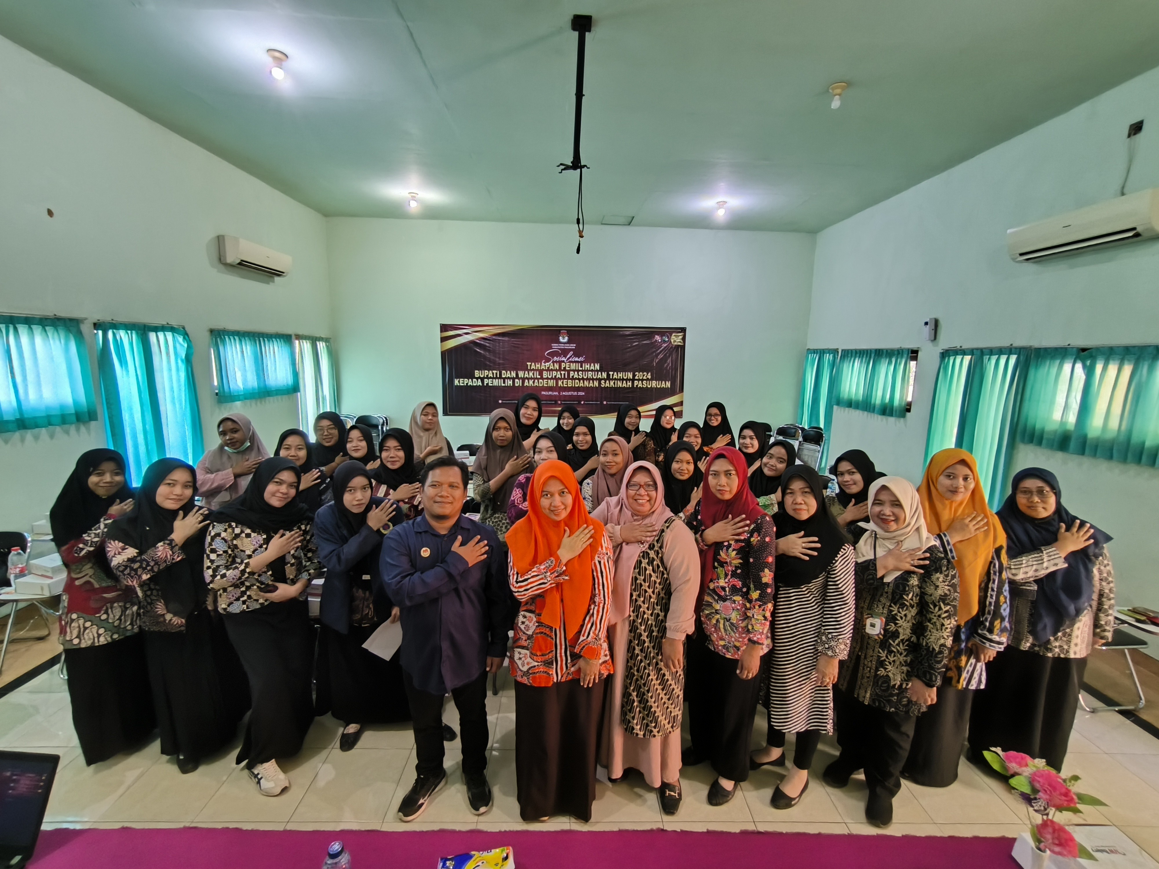 kab-pasuruan.kpu.go.id - Komisi Komisi Pemilihan Umum (KPU) Kabupaten Pasuruan gelar Sosialisasi Tahapan Pemilihan Bupati dan Wakil Bupati Pasuruan Tahun 2024 kepada Pemilih di Akademi Kebidanan Sakinah Pasuruan. Jum’at, (02/08/2024). Bertempat di Aula Akademi Kebidanan Sakinah Pasuruan.