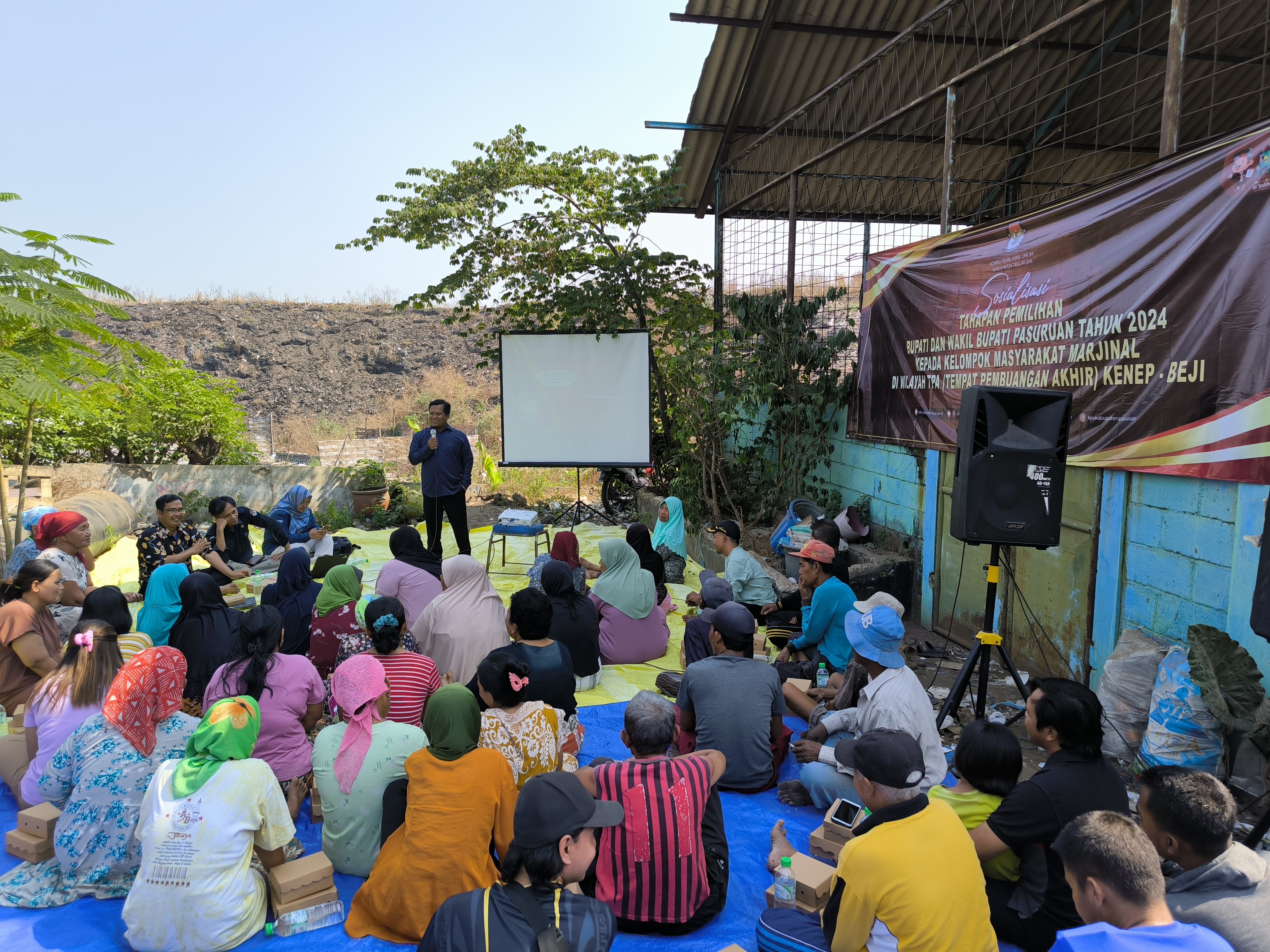 kab-pasuruan.kpu.go.id - Komisi Komisi Pemilihan Umum (KPU) Kabupaten Pasuruan gelar Sosialisasi Tahapan Pemilihan Bupati dan Wakil Bupati Pasuruan Tahun 2024 kepada Kelompok Masyarakat Marjinal di Wilayah TPA (Tempat Pembuangan Akhir) Kenep – Beji. Minggu, (28/7/2024). Bertempat di TPA (Tempat Pembuangan Akhir) Kenep, Kecamatan Beji.