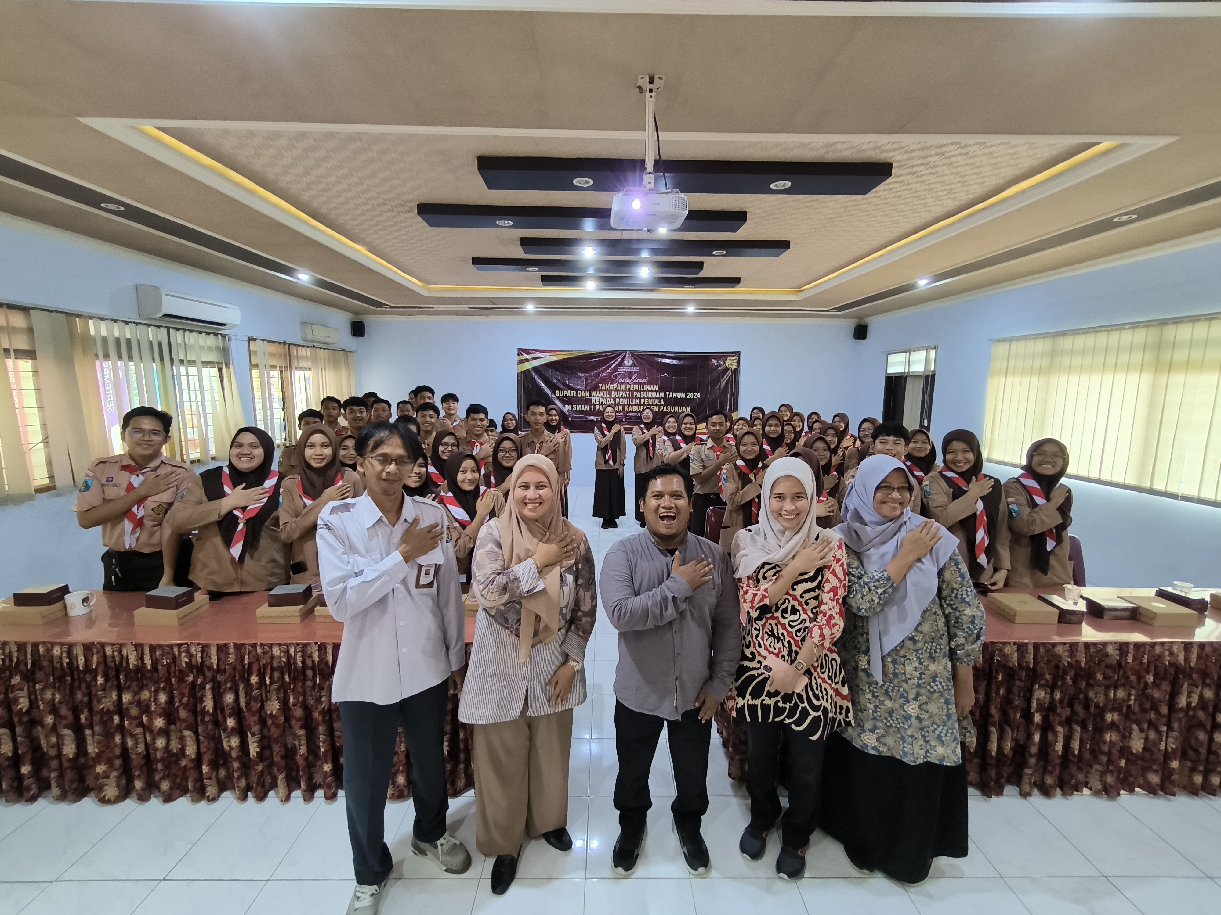 kab-pasuruan.kpu.go.id - Komisi Komisi Pemilihan Umum (KPU) Kabupaten Pasuruan gelar Sosialisasi Tahapan Pemilihan Bupati dan Wakil Bupati Pasuruan Tahun 2024 kepada Pemilih Pemula di SMAN 1 Pandaan Kabupaten Pasuruan. Kamis, (01/08/2024). Bertempat di Aula SMAN 1 Pandaan - Pasuruan.