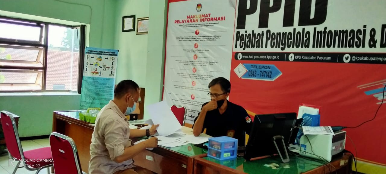 Ketua KI Jawa Timur ditemui oleh Divisi Sosdiklih Parmas dan SDM, Suyatmin bersama dengan Eriek Zainuri selaku Divisi Hukum dan Pengawasan KPU Kabupaten Pasuruan serta didampingi Sherla Rusdianto sebagai atasan PPID di ruang Tamu Pukul 12.30 WIB dan dilanjutkan dengan proses verifikasi kelengkapan dokumen informasi publik yang sebelumnya telah dikirimkan melalui e-mail oleh PPID KPU Kabupaten Pasuruan