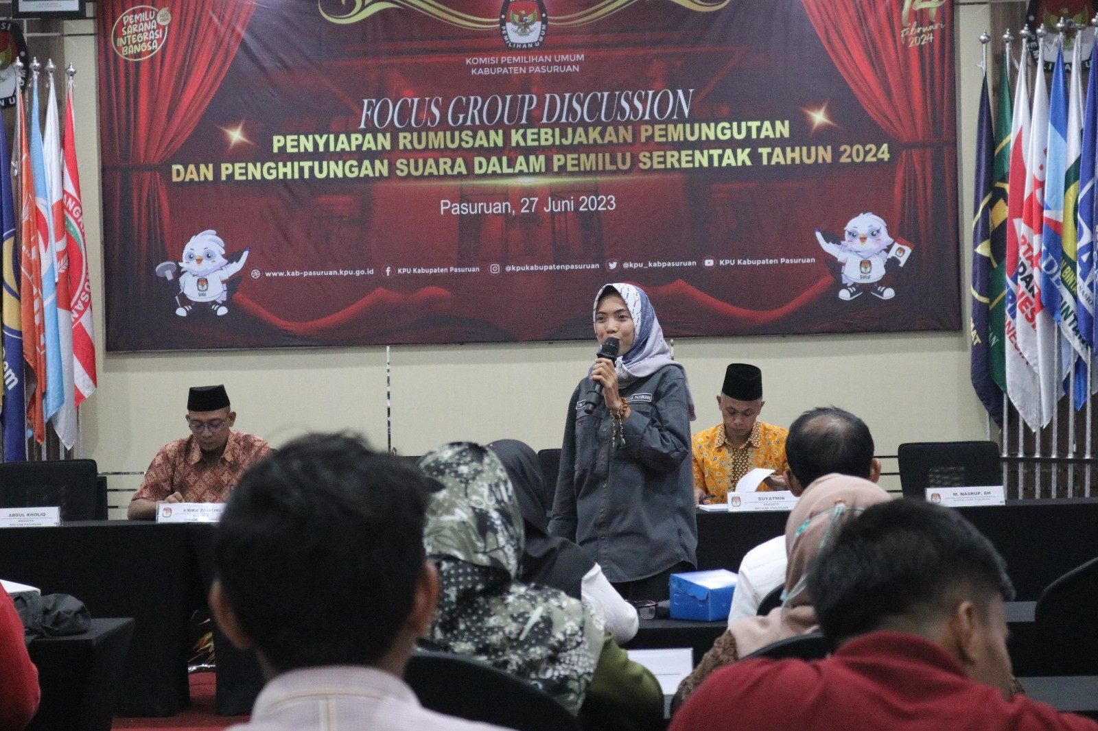 Demi efektifitas pelaksanaan Pemilu 2024, Komisi Pemilihan Umum (KPU) Kabupaten Pasuruan melakukan persiapan Rumusan Kebijakan Pemungutan dan Penghitungan Suara yang dikemas dalam bentuk Focus Group Discussion (FGD) pada Selasa, (27/06/2023) di Gedung Serbaguna KPU Kabupaten Pasuruan, Jl. Sudarsono No. 01 Pogar - Bangil Pasuruan.