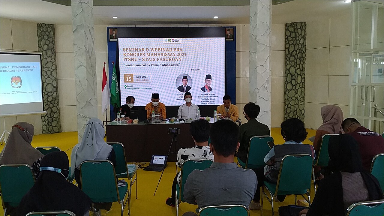 Pasuruan, kab-pasuruan.kpu.go.id –Rabu (15/09/2021) Komisi Pemilihan Umum (KPU) Kabupaten Pasuruan melaksanakan pendidikan pemilih pada kegiatan seminar pra kongres mahasiswa ITSNU-STAIS. Bertempat di lantai 3 kampus ITSNU-STAIS Pasuruan. Kegiatan dilakukan dengan protokol kesehatan yang ketat.
