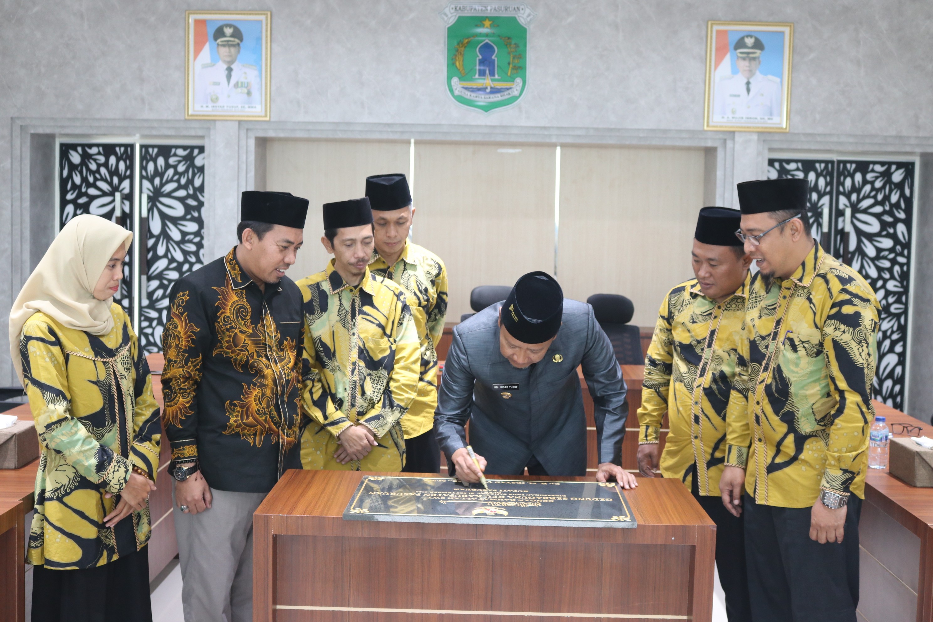 Setelah proses Penandatanganan NPHD dilanjutkan dengan Penandatanganan Prasasti Gedung KPU Kabupaten Pasuruan.