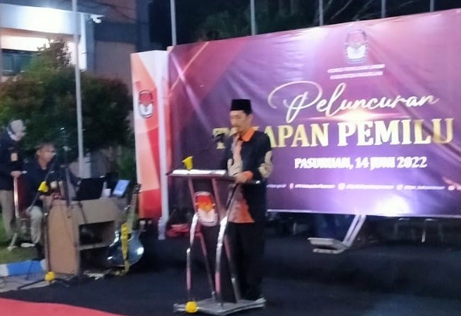 Pasuruan, kab-pasuruan.kpu.go.id. Selasa (14-06-2022). Tepat 20 bulan menjelang hari pemungutan suara yang akan diselenggarakan pada tanggal 14 Februari 2024, KPU Kabupaten Pasuruan mengundang para pemangku kepentingan, diantaranya Bawaslu, Forum Komunikasi Pimpinan Daerah (Forkopimda), maupun pimpinan partai politik untuk bersama-sama menyaksikan Peluncuran Tahapan Penyelenggaraan Pemilu 2024 yang dilaksanakan di halaman Kantor KPU Kabupaten Pasuruan.