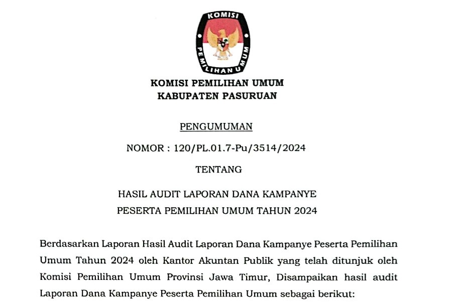PENGUMUMAN HASIL AUDIT LAPORAN DANA KAMPANYE PESERTA PEMILU TAHUN 2024