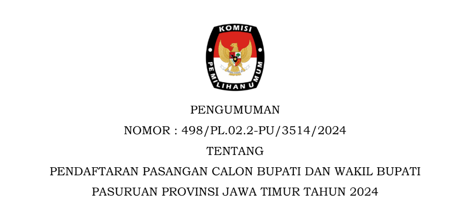 PENGUMUMAN PENDAFTARAN PASANGAN CALON BUPATI DAN WAKIL BUPATI PASURUAN PROVINSI JAWA TIMUR TAHUN 2024
