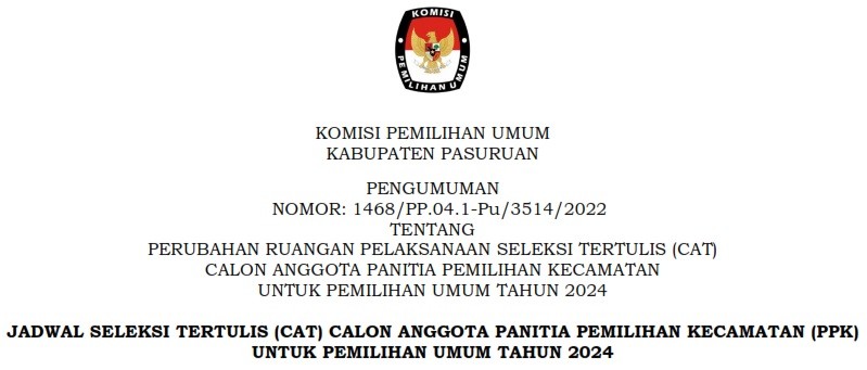PENGUMUMAN PERUBAHAN RUANGAN PELAKSANAAN SELEKSI TERTULIS CALON ANGGOTA PANITIA PEMILIHAN KECAMATAN