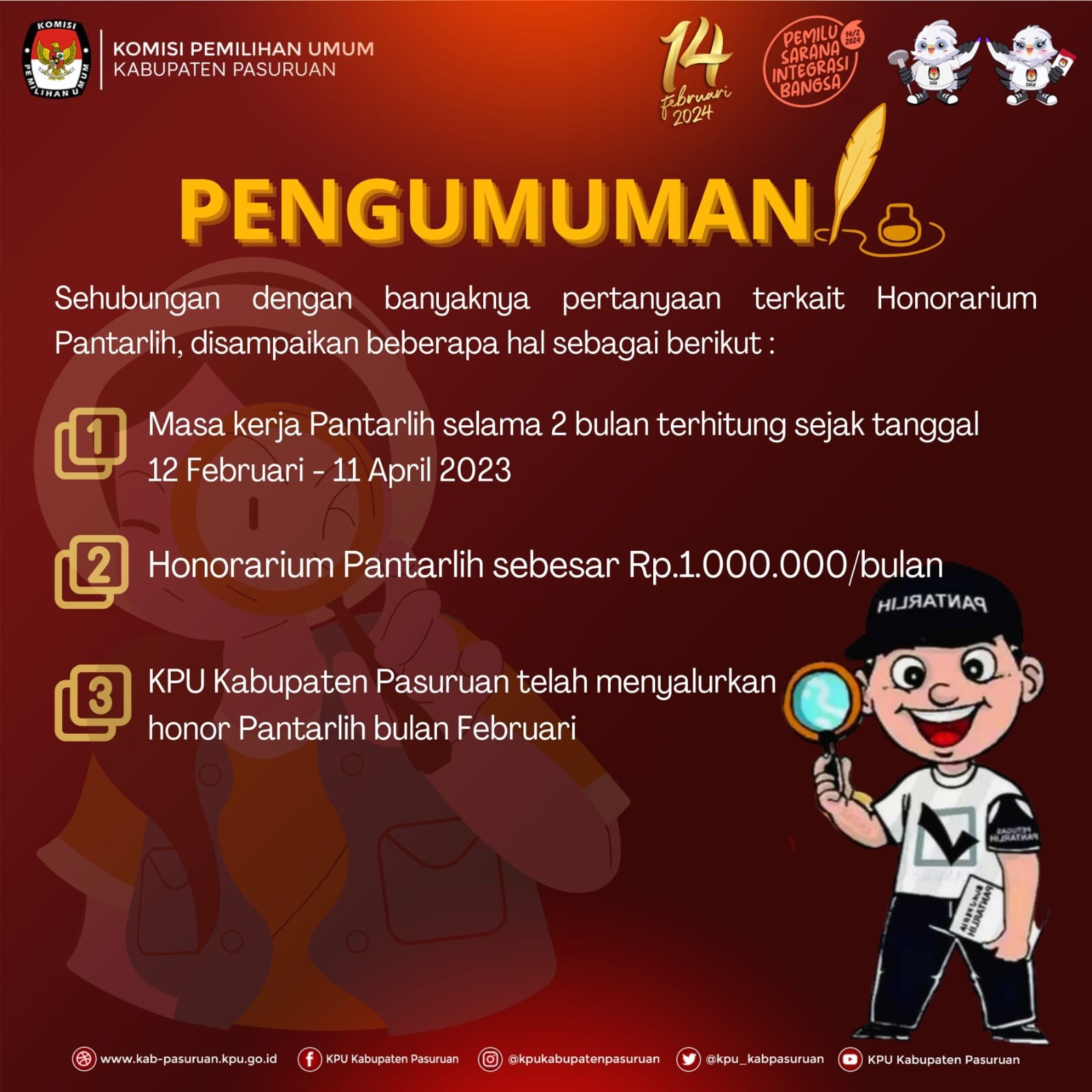 Pengumuman terkait Honorarium Pantarlih