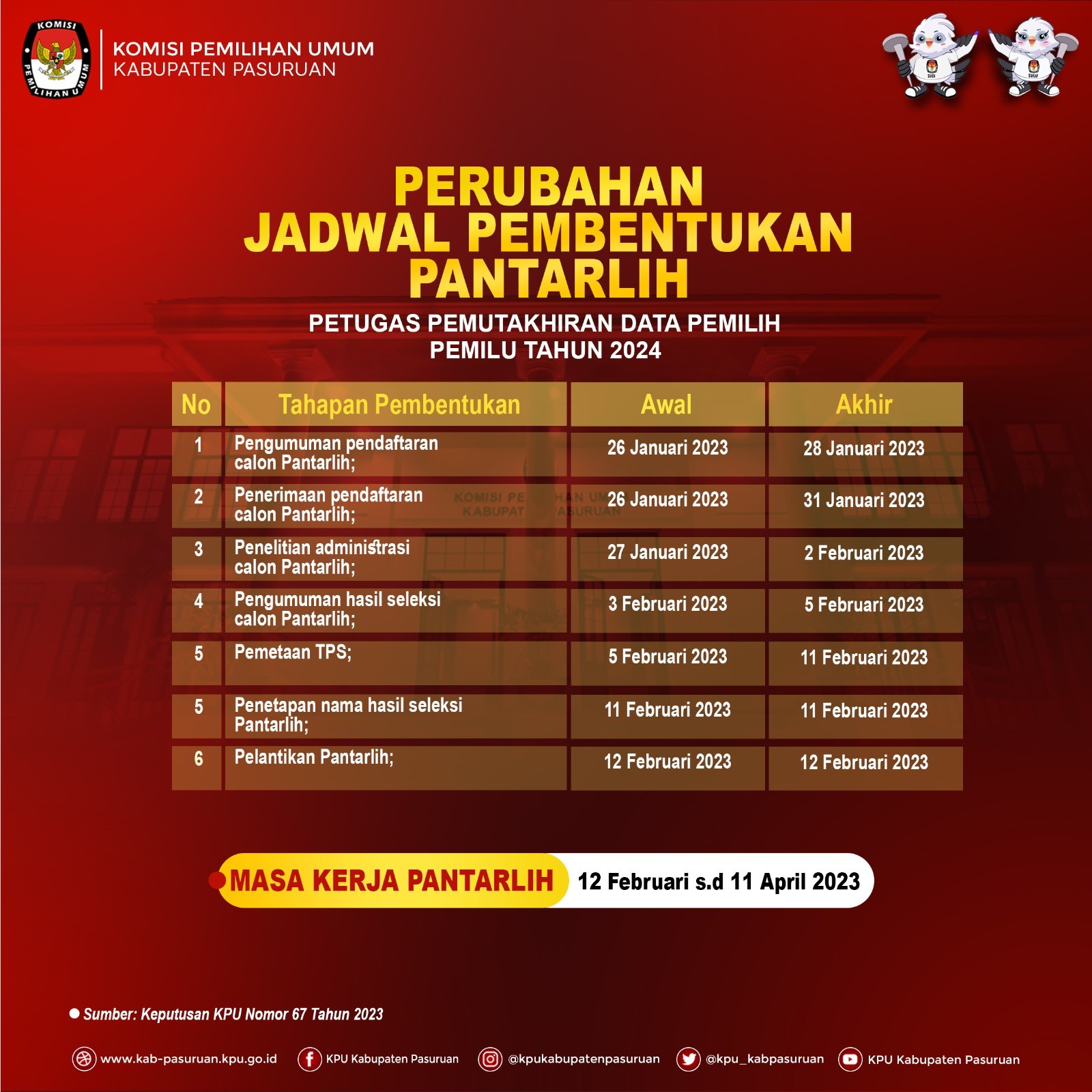 Perubahan Jadwal Pembentukan Petugas Pemutakhiran Daftar Pemilih Pemilu Tahun 2024 sesuai Keputusan KPU Nomor 67 Tahun 2023