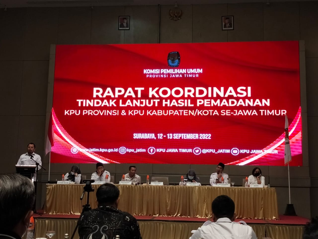 Hal demikian disampaikan Ketua KPU Provinsi Jawa Timur Choirul Anam dalam pembukaan Rapat Koordinasi (Rakor)Tindak Lanjut Hasil Pemadanan Data Pemilih Berkelanjutan (DPB) dengan Data Kependudukan oleh KPU Provinsi dan KPU Kabupaten/Kota Se-Jawa Timur yang berlangsung di Vasa Hotel Surabaya Senin-Selasa, 12-13/9/2022.