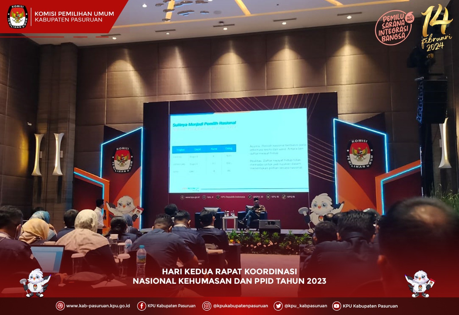 Dalam rangka meningkatkan kualitas layanan informasi publik, Komisi Pemilihan Umum Republik Indonesia menggelar Rapat Koordinasi Nasional Kehumasan dan PPID Tahun 2023, (25-27/09/2023) bertempat di Hotel Novotel Kota Tangerang. Adapun peserta rapat diikuti oleh anggota KPU provinsi yang membidangi divisi sosialisasi pendidikan pemilih dan partisipasi masyarakat, anggota KPU kabupaten/ kota yang membidangi divisi sosdiklih, parmas dan SDM, kepala bagian Teknis Partisipasi Masyarakat dan Humas KPU Provinsi, Kasubag Teknis dan hupmas KPU Kabupaten/kota seluruh Indonesia.