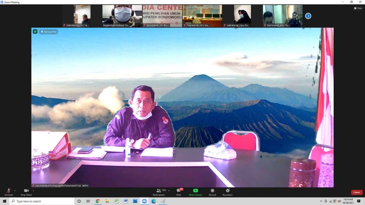 Pasuruan – Selasa (08/06/2021) melalui surat undang Nomor 474/SDM.07-Und/05/SJ/VI/2021, KPU Republik Indonesia melaksanakan rapat koordinasi bersama seluruh Sekretariat KPU Provinsi dan Sekretariat KPU Kabupaten/Kota se Indonesia secara daring dimulai pukul 10.00 WIB sampai selesai.